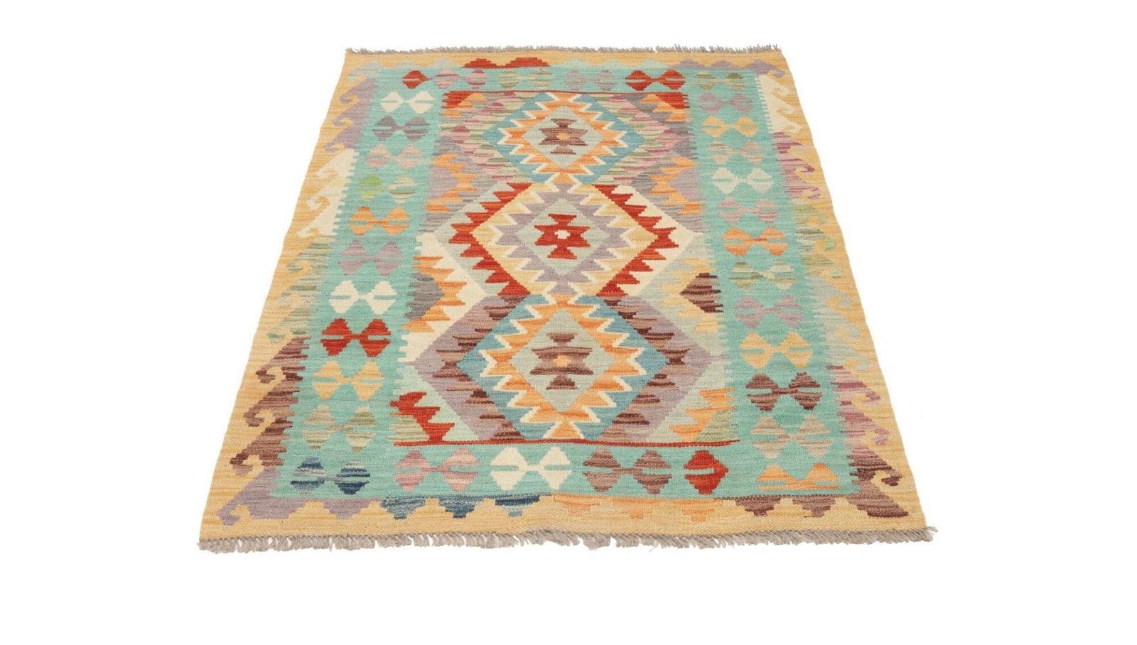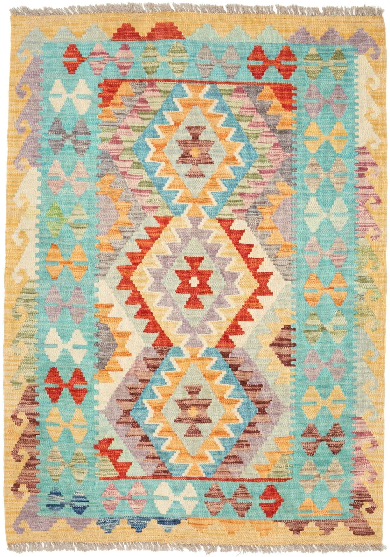 278$Ursprünglicher Preis war: 278$208$Aktueller Preis ist: 208$Handgewebter Kelim | Herkunft: Pakistan | Knotendichte: ca. 200.000 Knoten/m² | Material: 100% Schurwolle im Flor, 100% Baumwolle in der Kette | Größe: 107 x 146 cm | Höhe: ca. 5 mm | Rustikales Flair für moderne Wohnräume