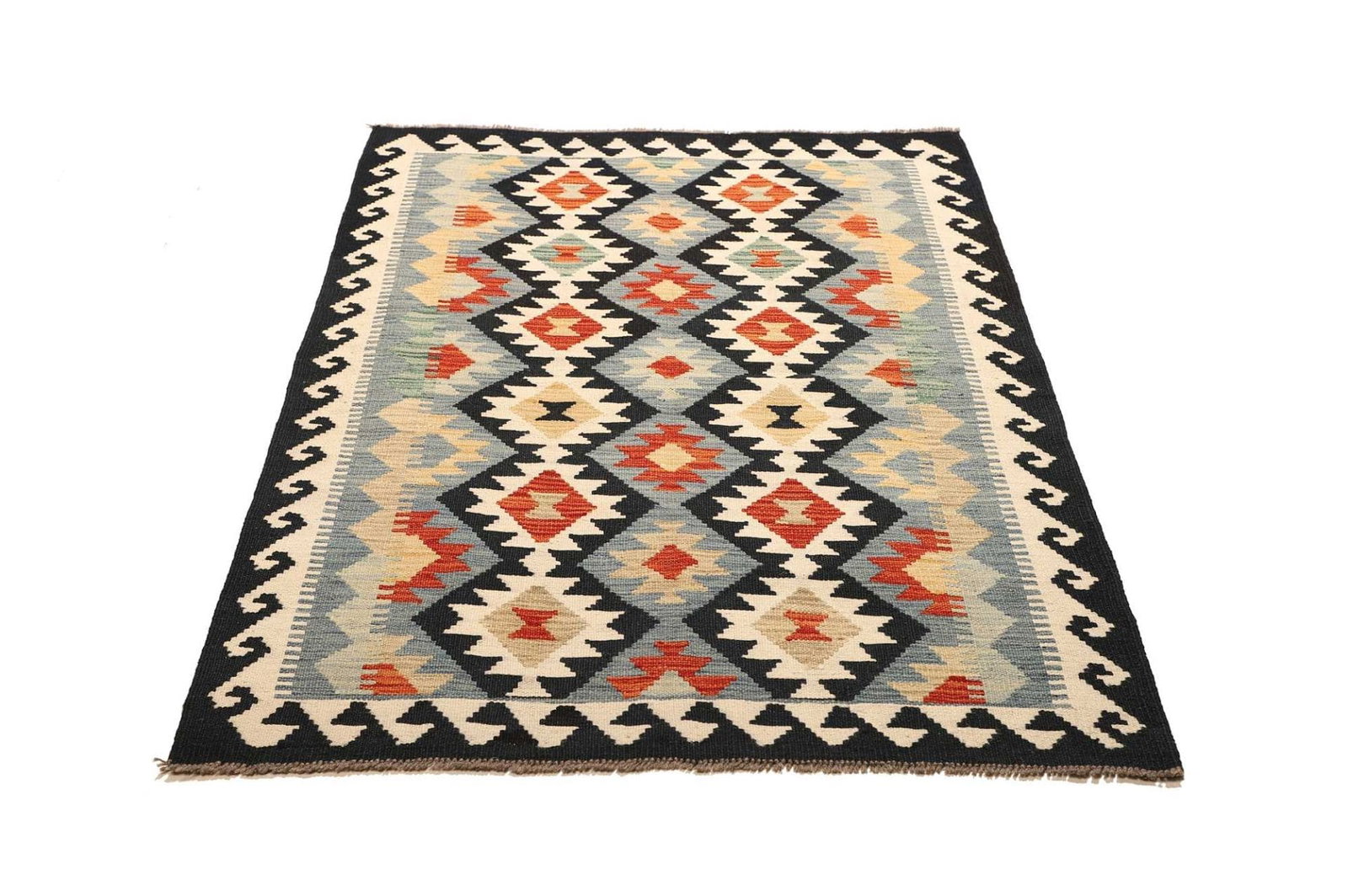 Handgewebter Kelim | Knotendichte: ca. 200.000 Knoten/m² | Material: 100% Schurwolle, Kette: 100% Baumwolle | Größe: 107 x 152 cm | Herkunft: Pakistan | Höhe: ca. 5 mm | Rustikales Flair, ideal für moderne Einrichtungsstile