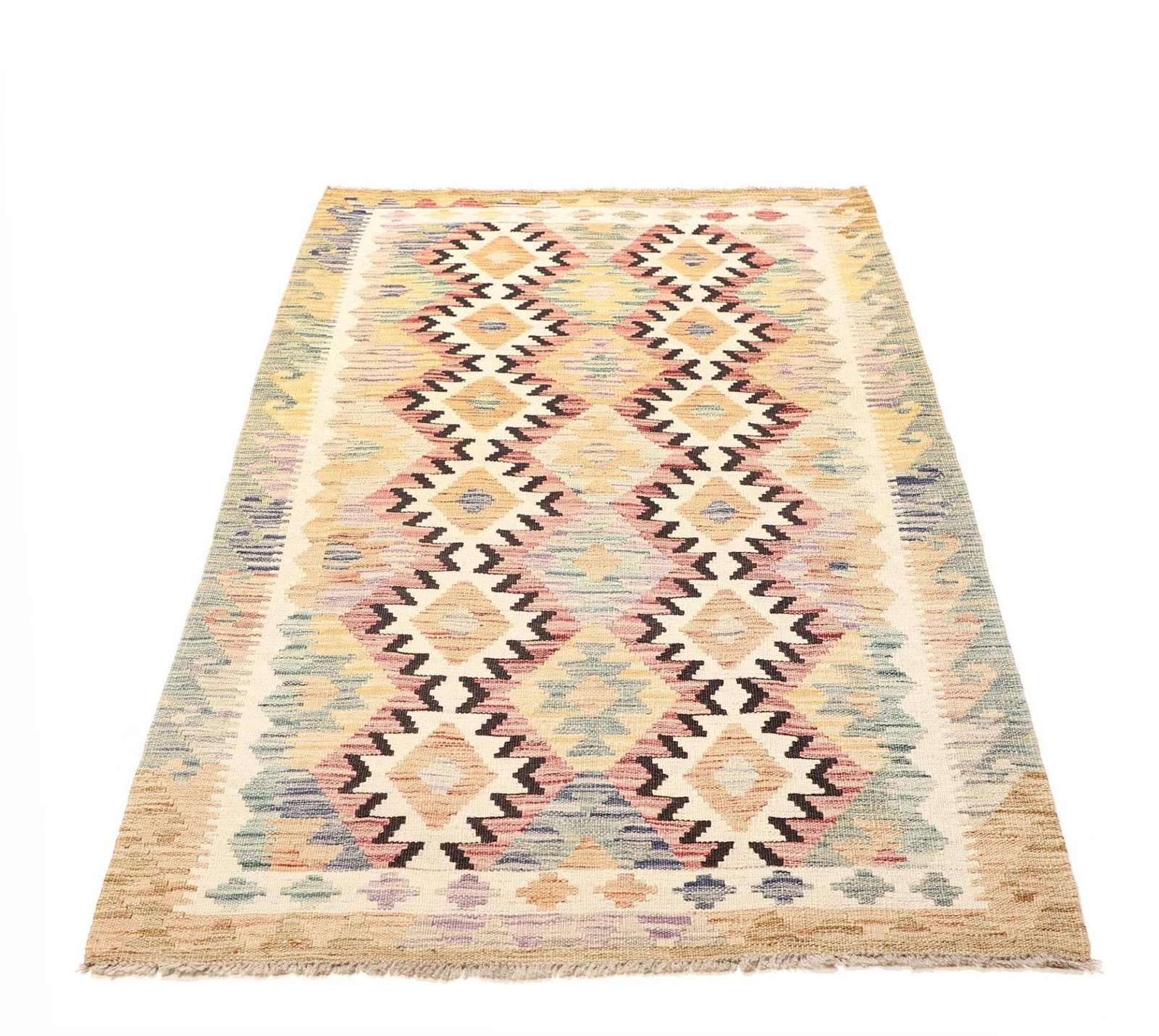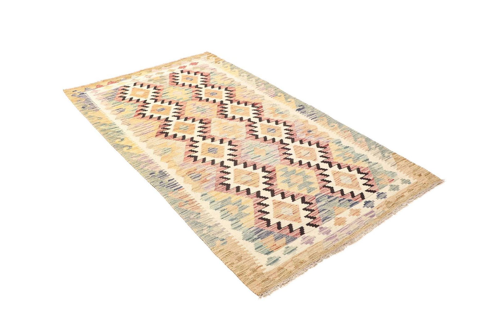 Kelim Teppich | Größe: 107 x 187 cm | Knotendichte: ca. 200.000 Knoten/m² | Flor: 100% Schurwolle | Kette: 100% Baumwolle | Höhe: ca. 5 mm | Herkunft: Pakistan | Handgewebte Qualität