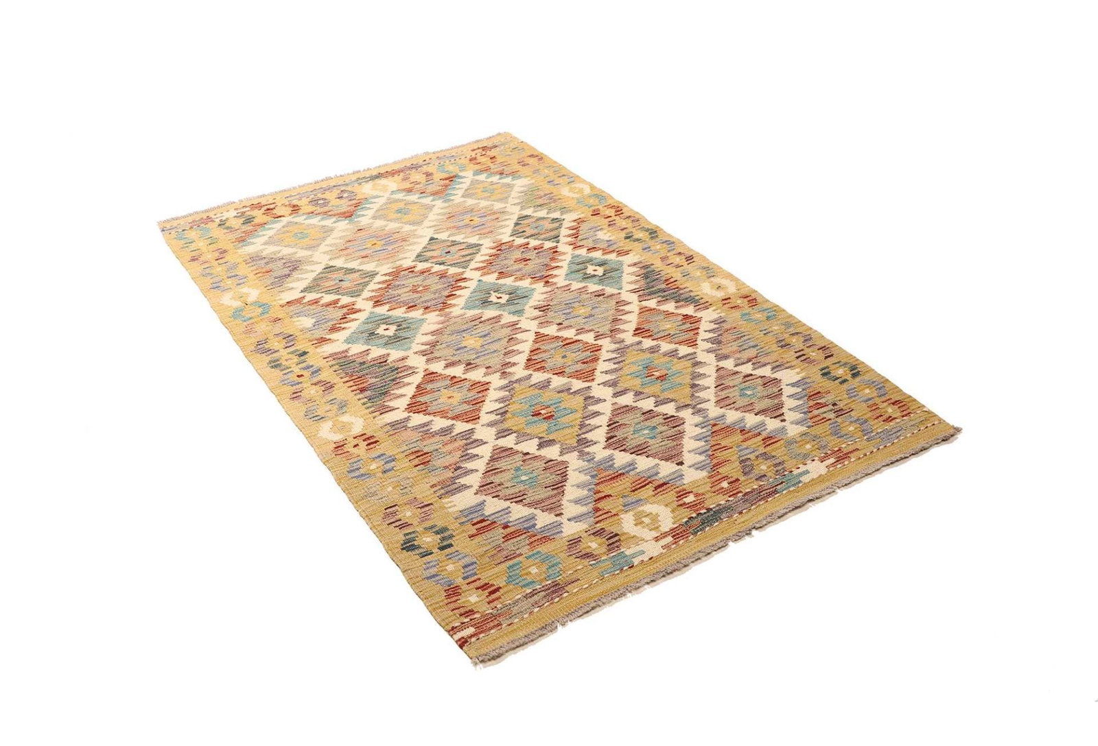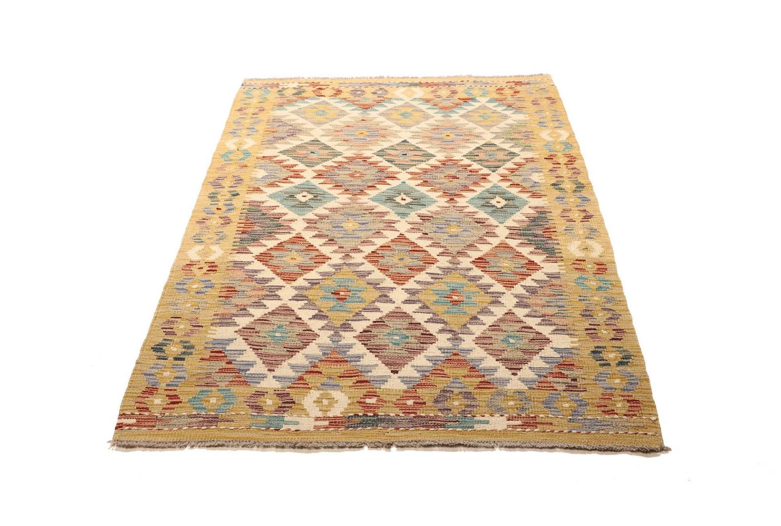 Kelim Teppich 108 x 152 cm aus Schurwolle, handgewebt, rustikal