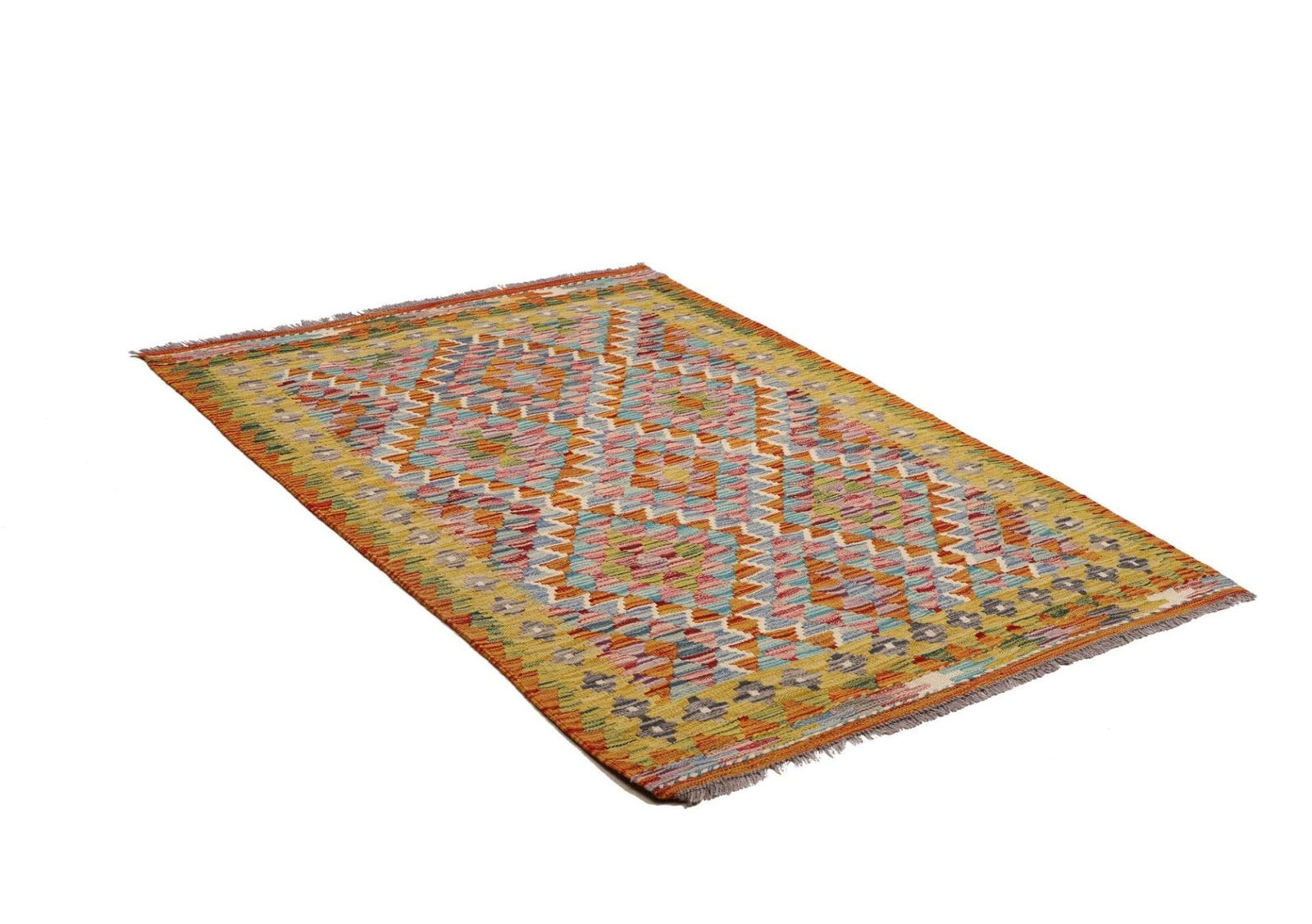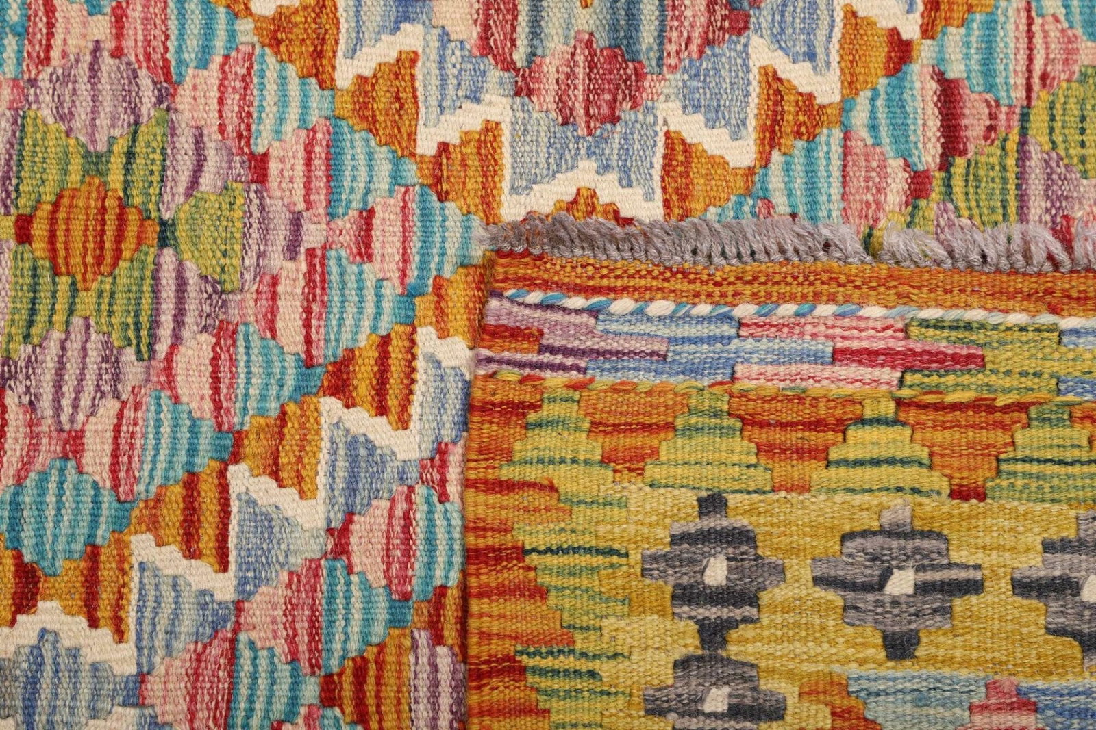 Der rustikale Stil dieses Teppichs wird durch das harmonische Zusammenspiel von Farben und Mustern unterstrichen. Die geometrischen Formen und klaren Linien sind typisch für die Kelim Tradition und verleihen dem Teppich eine zeitlose Eleganz. Diese Designs sind nicht nur ästhetisch ansprechend, sondern tragen auch zur Definition des Raumes bei. Egal, ob Sie ihn in einem modernen oder traditionellen Raum einsetzen – dieser Teppich wird garantiert zum Blickfang.