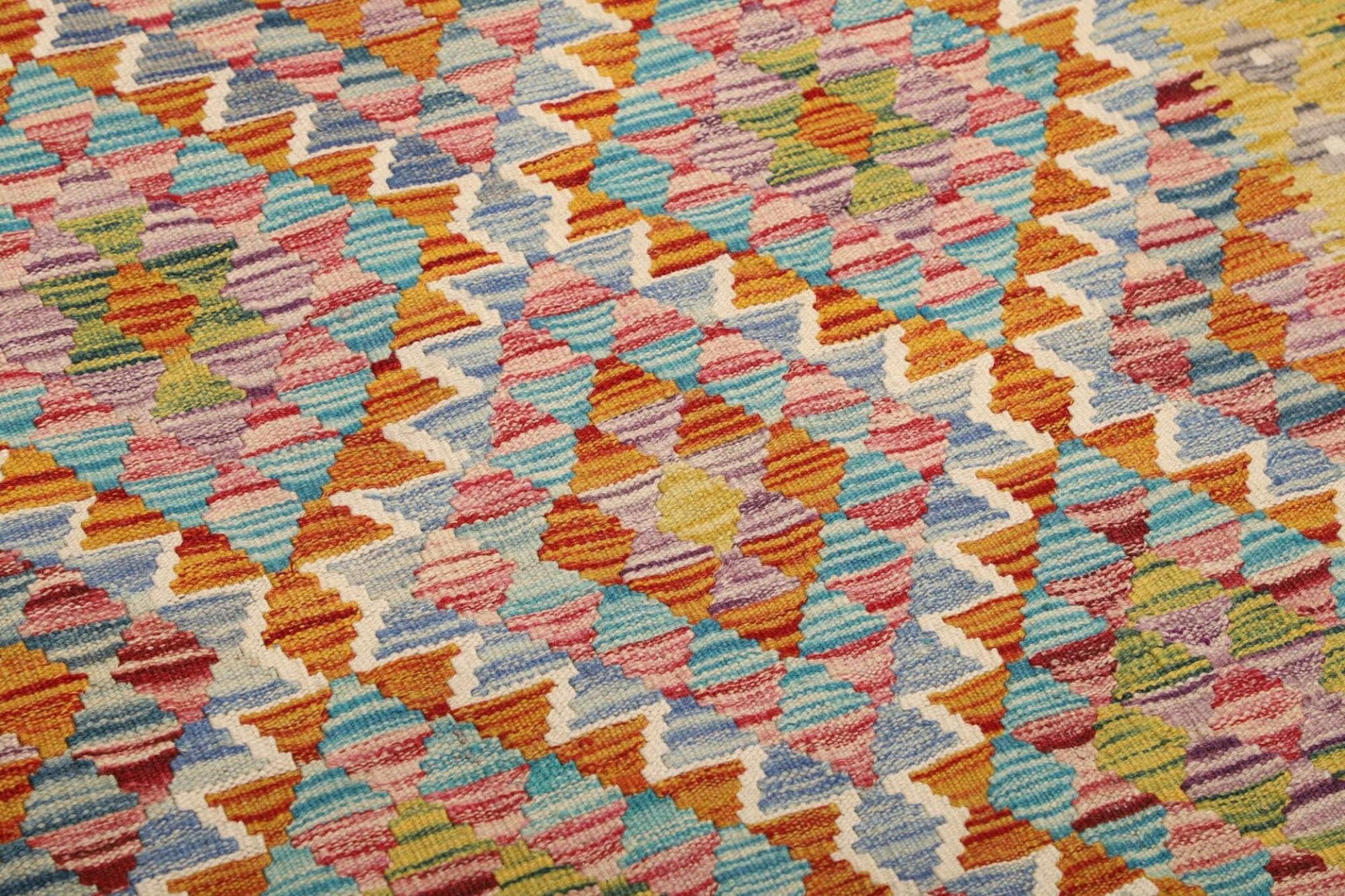 Der verwendete Schurwolle für diesen Kelim Teppich ist nicht nur besonders weich, sondern auch äußerst strapazierfähig. Wolle hat natürliche Eigenschaften, die es ihr ermöglichen, die Temperatur zu regulieren und gleichzeitig eine angenehme Oberfläche für Ihre Füße zu schaffen. Dadurch ist der Teppich ideal für Wohnräume, Flure und sogar Schlafzimmer geeignet. Die handgewebte Technik sichert eine hohe Knotendichte, die für ein langlebiges Produkt sorgt. Diese Methode garantiert, dass jedes Stück individuell und mit großer Sorgfalt gefertigt wird.
