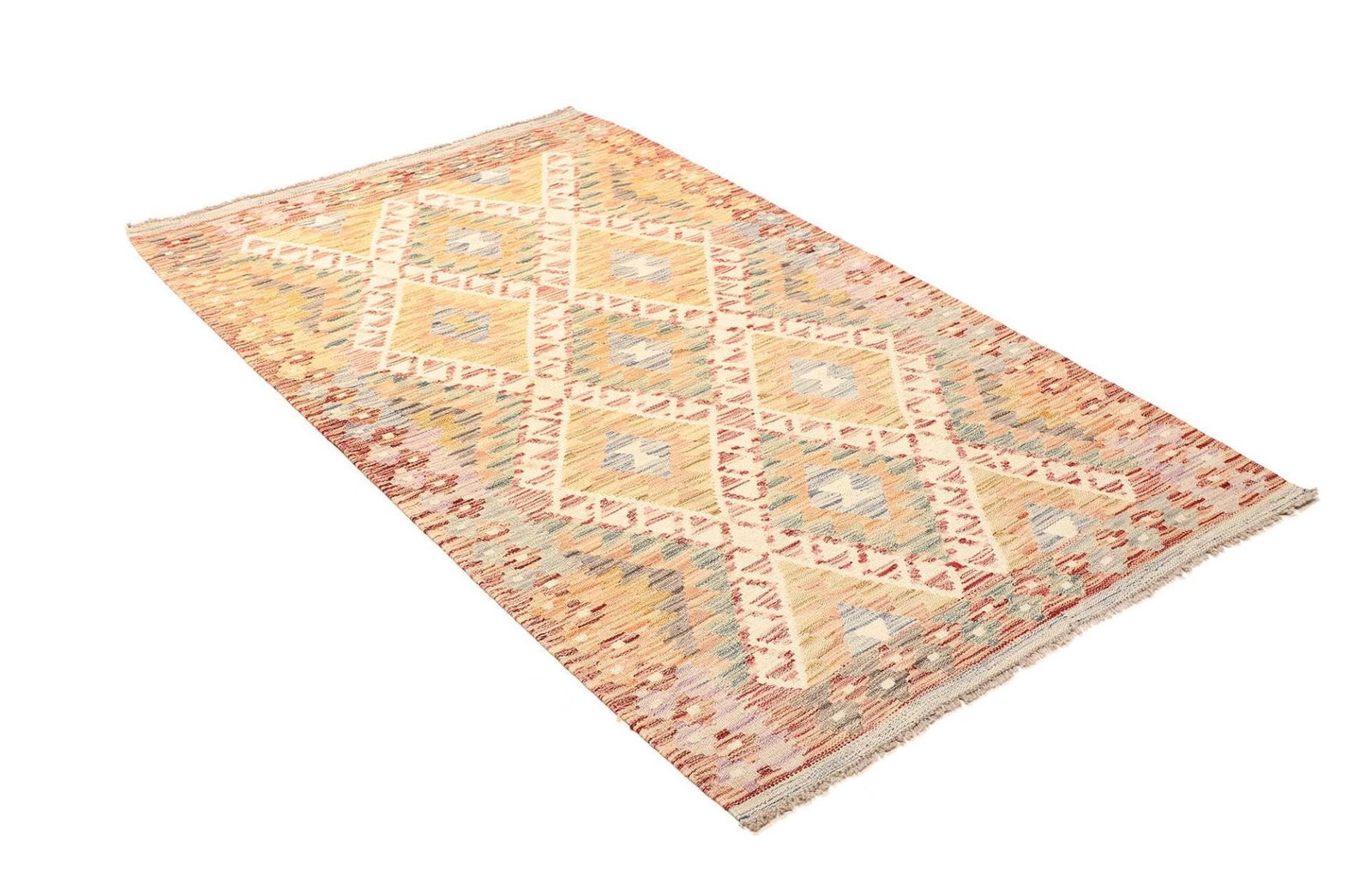 Kelim Teppich 111 x 187 cm aus Schurwolle, handgewebt, rustikales Flair