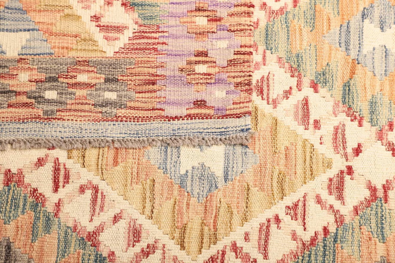 Dieser Kelim Teppich zeichnet sich durch seine einzigartigen geometrischen Muster und kräftigen Farben aus. Die Designs sind oft inspiriert von der Natur und spiegeln die Kultur und Geschichte der Region wider, aus der sie stammen. Die Verwendung von Kontrasten zwischen verschiedenen Farbtönen schafft dynamische und ansprechende visuelle Effekte, die jedem Raum Tiefe verleihen.