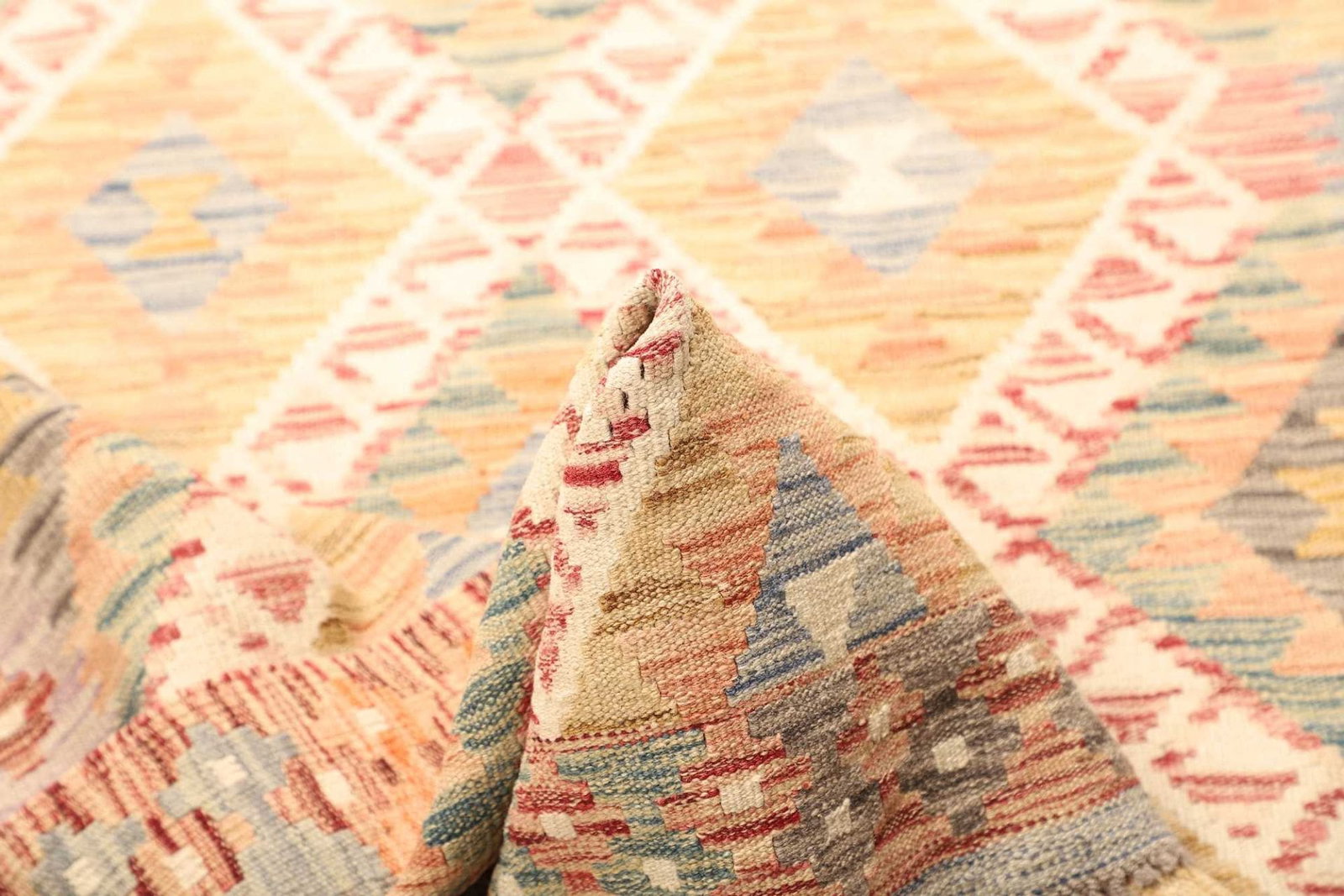 971$ In den WarenkorbHandgewebter Ghashgai Kelim Teppich aus Wolle in Naturfarbe – 290 x 200 cm