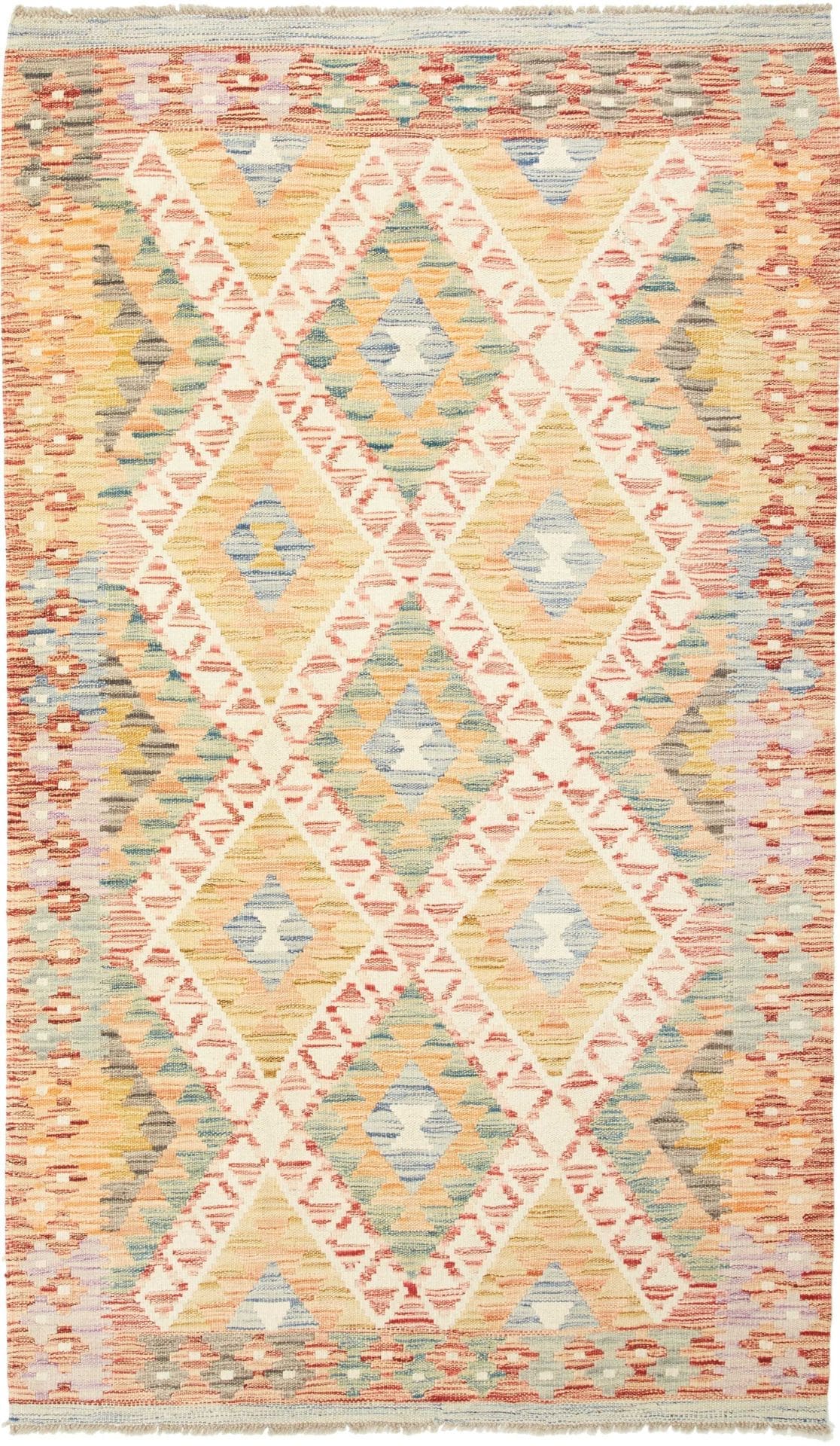 302$Ursprünglicher Preis war: 302$254$Aktueller Preis ist: 254$Kelim Teppich | Größe: 111 x 187 cm | Knotendichte: ca. 200.000 Knoten/m² | Flor: 100% Schurwolle | Kette: 100% Baumwolle | Verarbeitung: Handgewebt | Herkunft: Pakistan | Höhe: ca. 5 mm