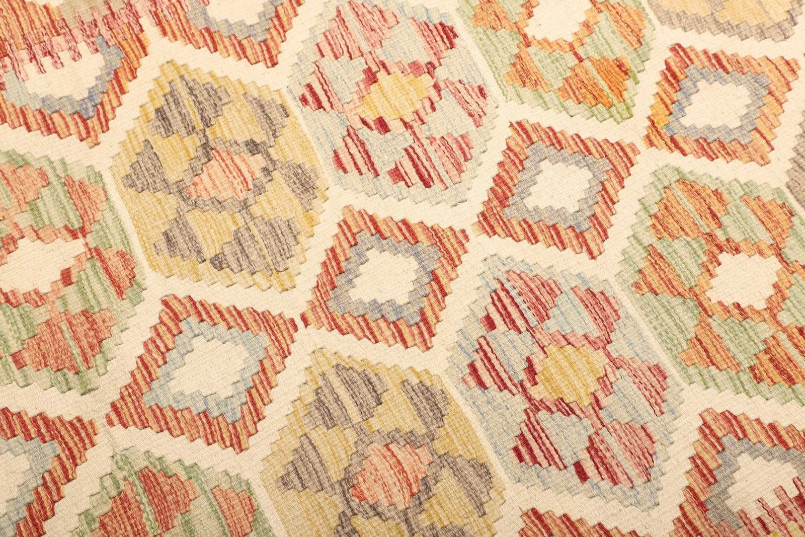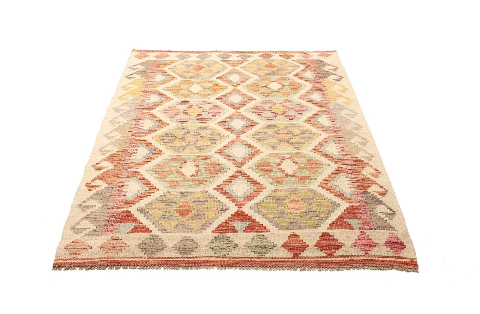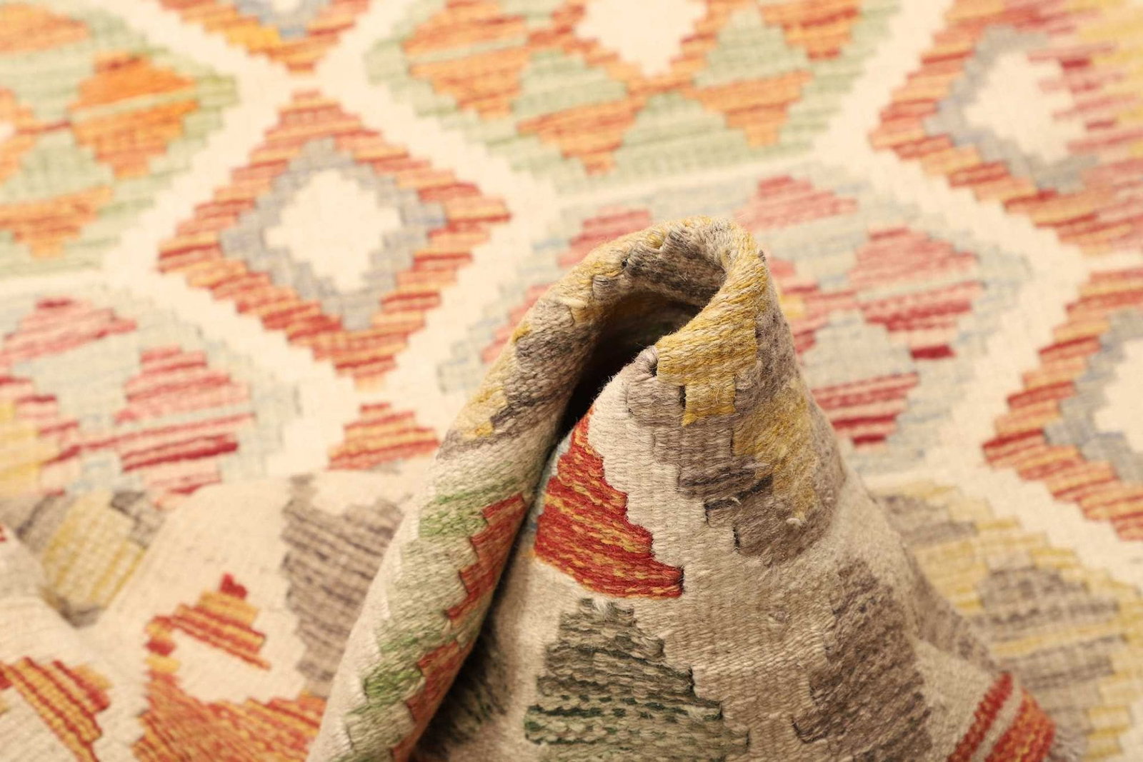 Der Kelim Teppich besteht aus hochwertiger, reiner Wolle, die nicht nur für ihre Strapazierfähigkeit bekannt ist, sondern auch für ihre Pflegeleichtigkeit. Wolle hat die natürliche Eigenschaft, Wärme zu speichern und Feuchtigkeit abzuleiten, sodass der Teppich das ganze Jahr über ein behagliches Wohngefühl bietet. Der handgewebte Prozess, bei dem jede Faser sorgsam platziert wird, ermöglicht einzigartige Muster und Designs, die dem Teppich seinen individuellen Charakter verleihen.