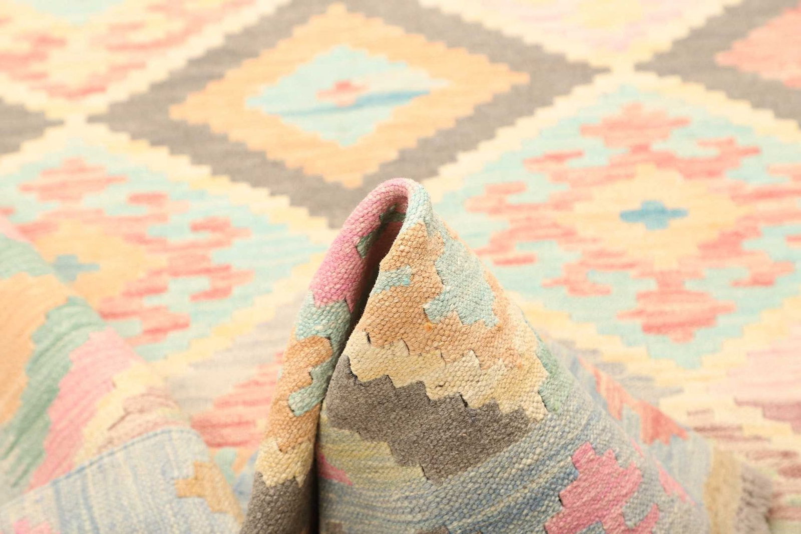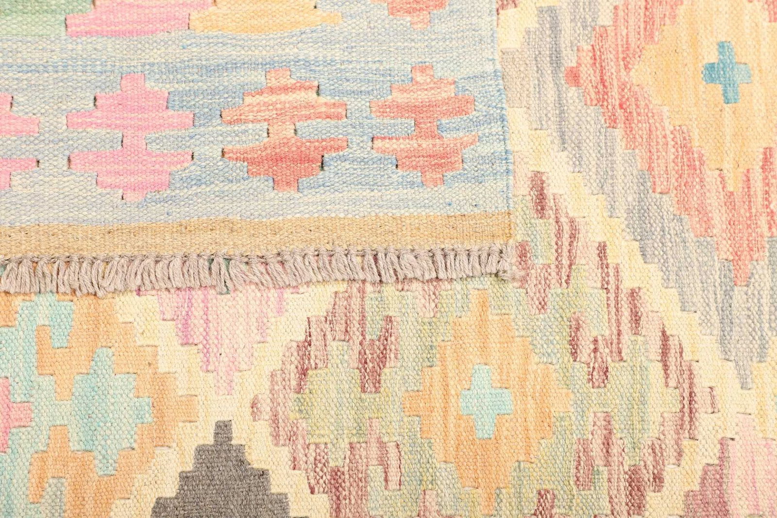 Die Gestaltung des Kelim Teppichs ist ein bemerkenswertes Element, das ihn von anderen Teppichen unterscheidet. Die Kombination aus lebhaften Farben und geometrischen Mustern bringt Leben und Energie in jeden Raum. Oft sind diese Muster das Ergebnis traditioneller künstlerischer Ausdrucksformen, die seit Jahrhunderten in den Kulturen zentralasiatischer Völker präsent sind.