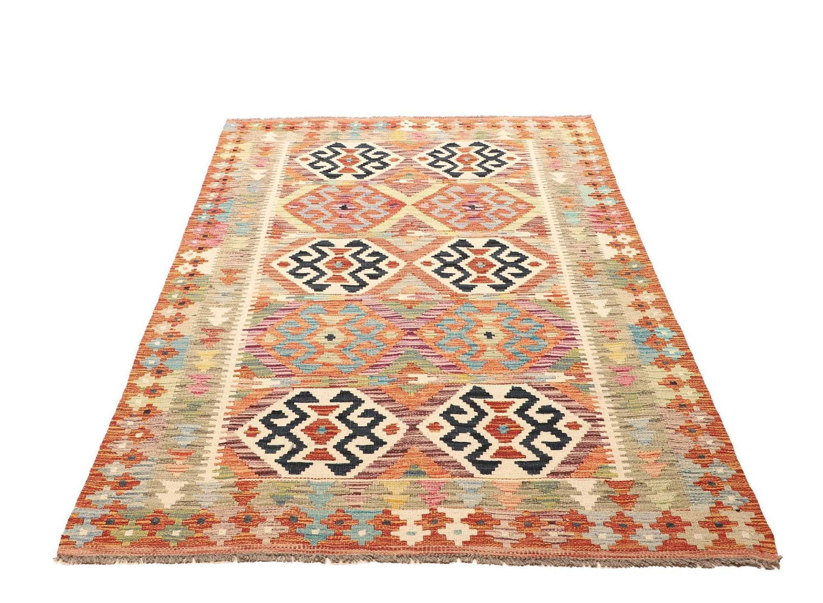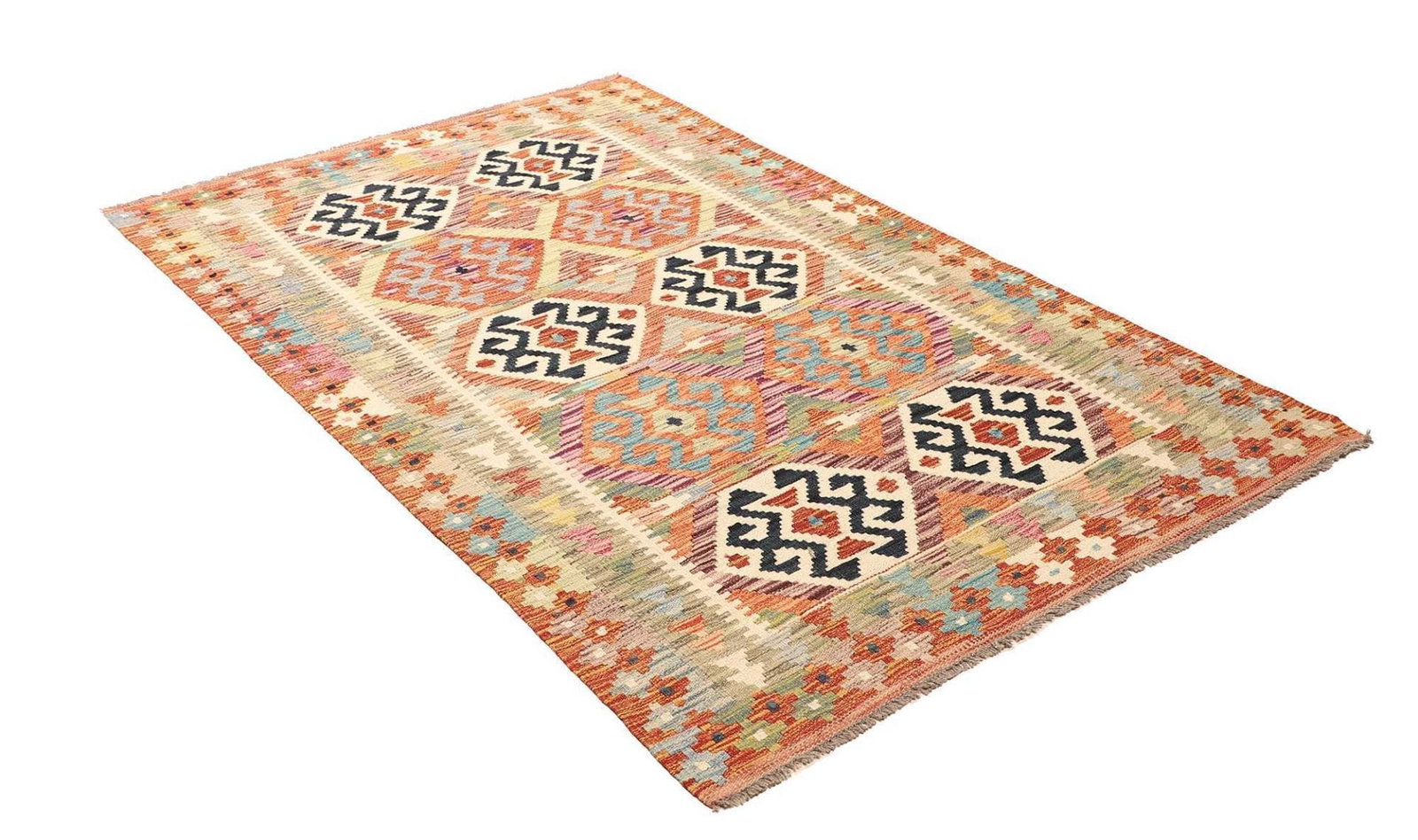 Kelim Teppich | Größe: 123 x 186 cm | Knotendichte: ca. 200.000 Knoten/m² | Flor: 100% Schurwolle | Kette: 100% Baumwolle | Herkunft: Pakistan | Handgewebte Qualität | Höhe: ca. 5 mm