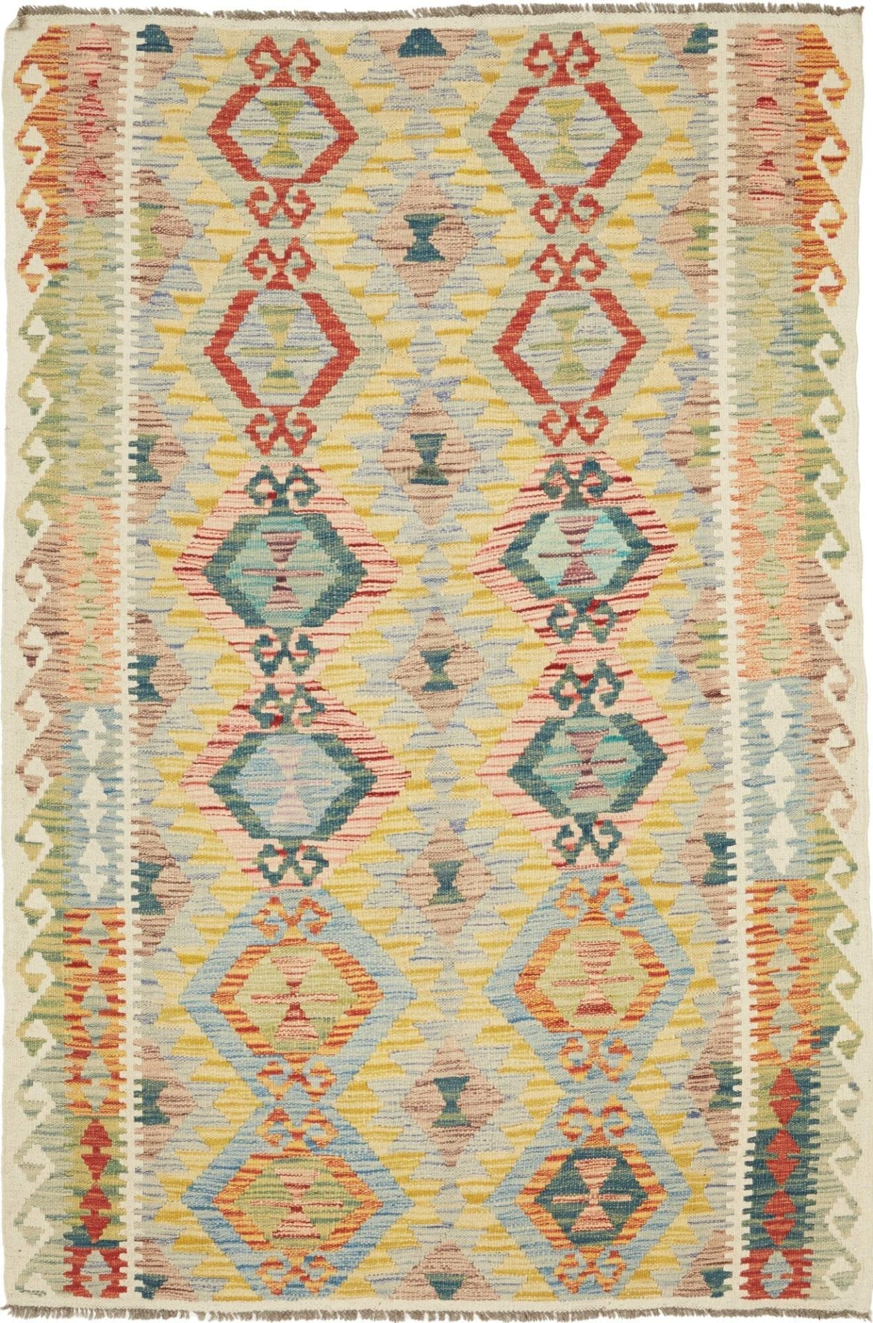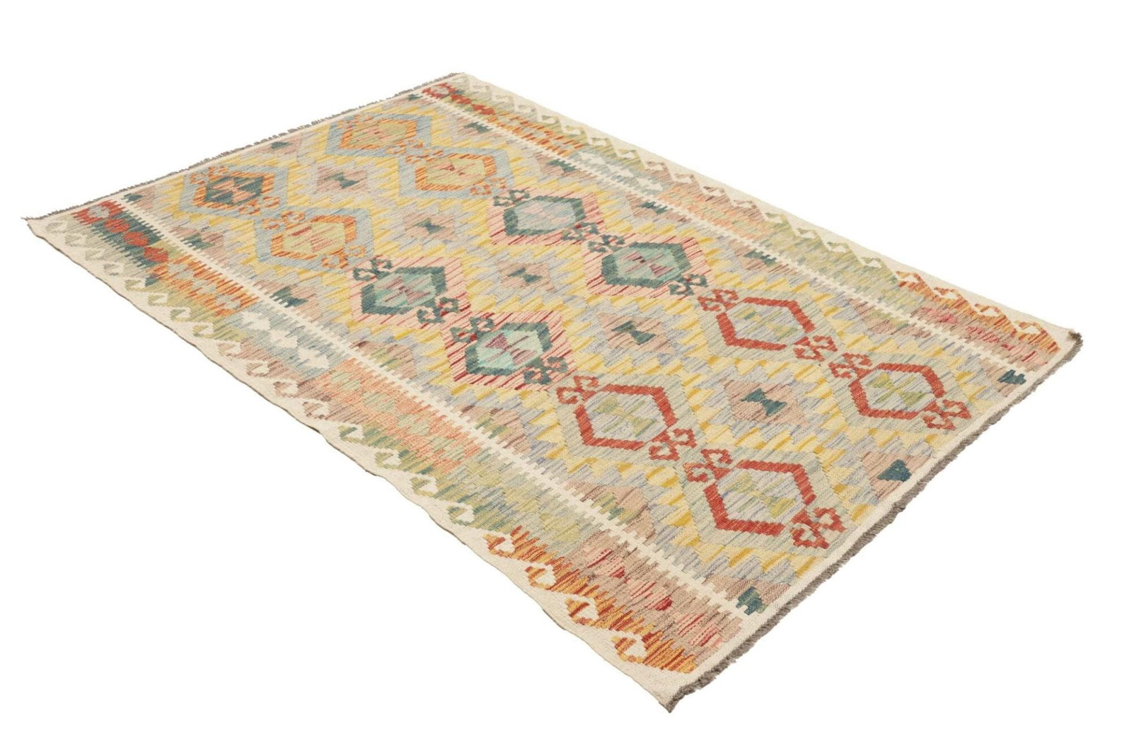 Kelim Teppich 124 x 181cm, handgewebt, rustikales Flair, Wolle