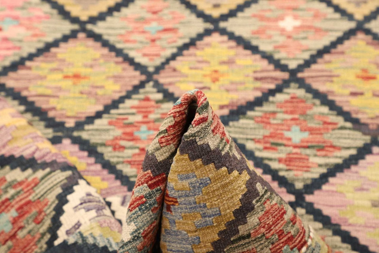 Ein weiterer Vorteil dieses handgewebten Kelim Teppichs liegt in seiner Umweltfreundlichkeit. Durch die Verwendung von natürlichen Materialien und traditionellen Fertigungsmethoden ist er frei von schädlichen Chemikalien und ideal für Allergiker. Zudem ist die Pflege eines Kelim Teppichs unkompliziert; er kann einfach mit einem Staubsauger gereinigt werden und ist aufgrund seiner flachen Struktur geringfügig schmutzanfälliger. Dies macht ihn zu einem perfekten Begleiter für stark frequentierte Bereiche in Ihrem Zuhause.