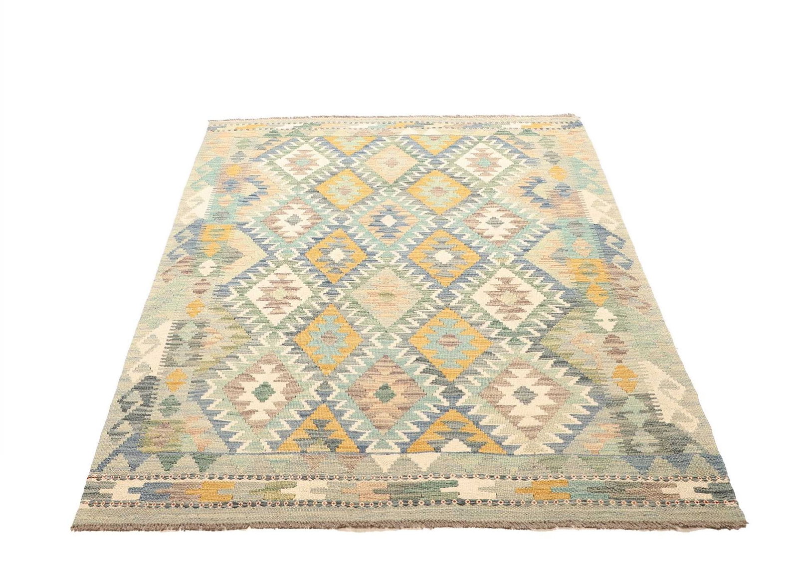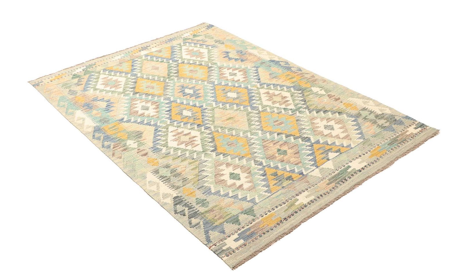 Kelim Teppich | Knotendichte: ca. 200.000 Knoten/m² | Material: 100% Schurwolle | Kette: 100% Baumwolle | Größe: 125×168 cm | Zustand: Handgewebt | Herkunft: Pakistan | Florhöhe: ca. 5 mm