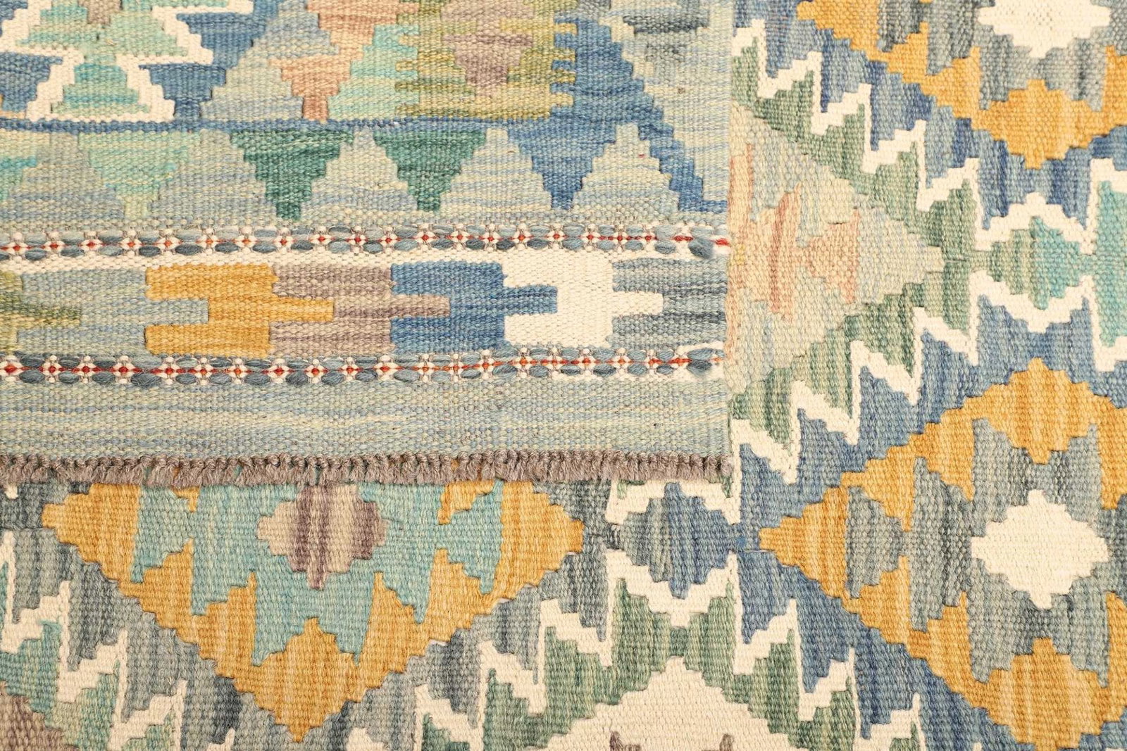 Ein herausragendes Merkmal dieses Kelim Teppichs ist seine Vielseitigkeit. Ob im Wohnzimmer, Schlafzimmer, im Flur oder sogar im Essbereich – die neutralen Farben und das ansprechende Design passen zu nahezu jedem Einrichtungsstil. Zudem ist der Teppich strapazierfähig und kann sowohl in Fußgängerzonen als auch in ruhigen Bereichen verwendet werden.