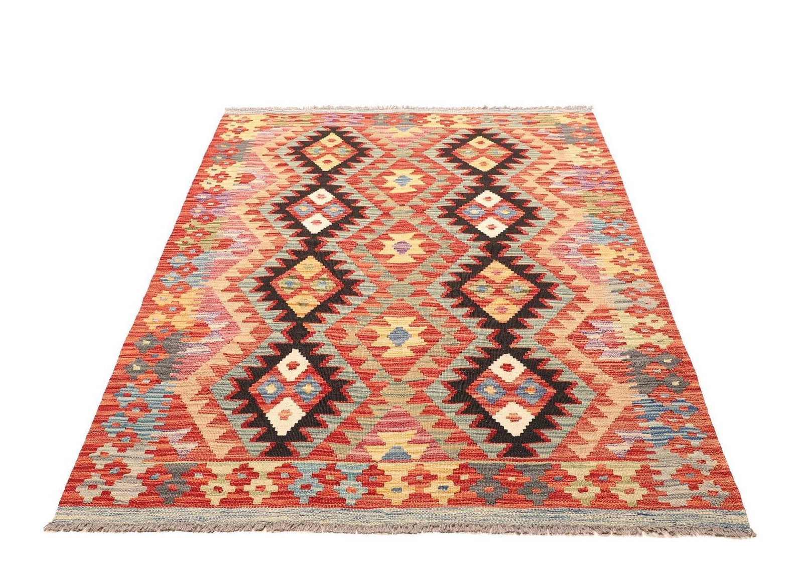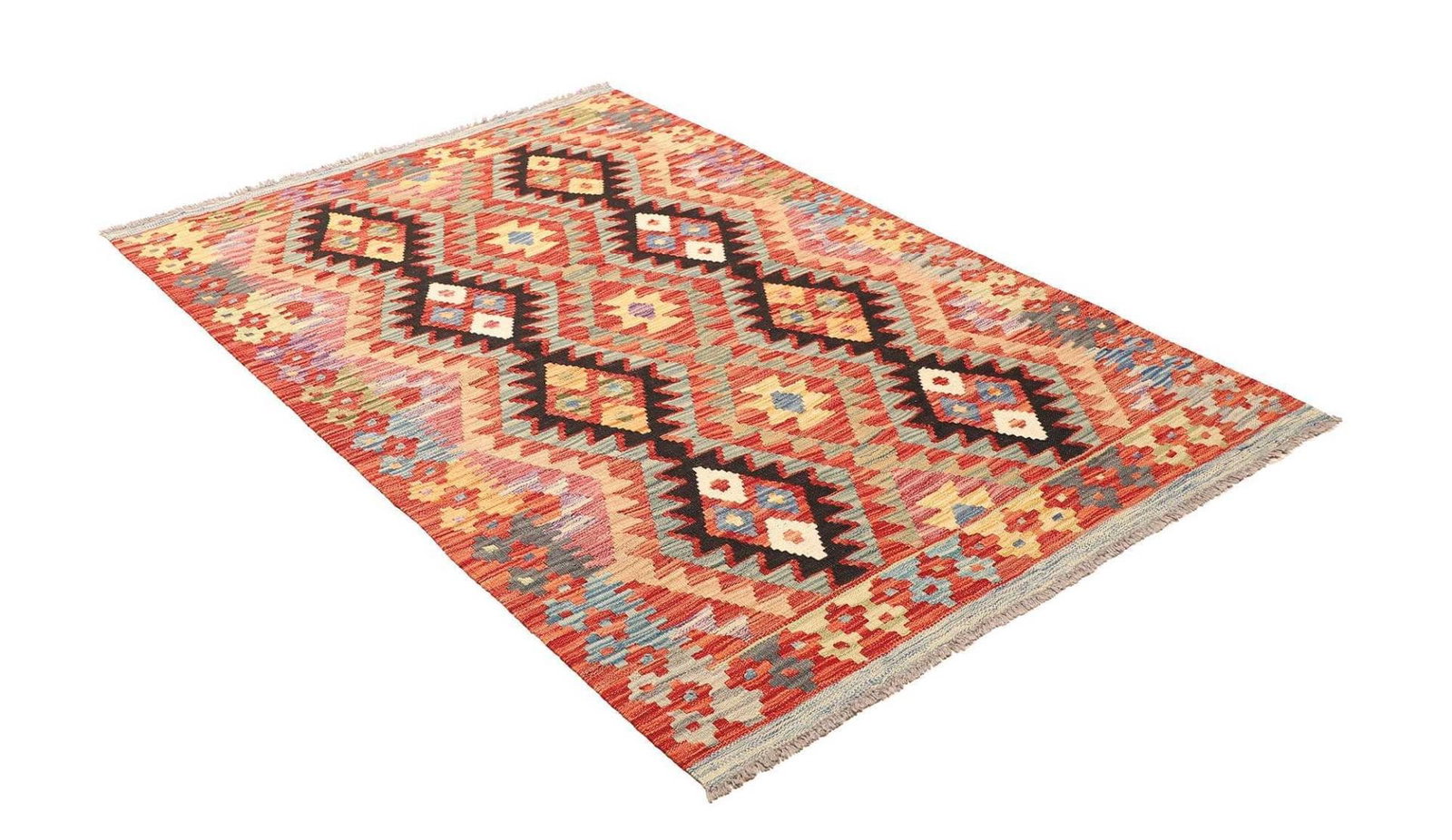 Kelim Teppich 125 x 182cm aus Schurwolle, handgewebt, rustikal