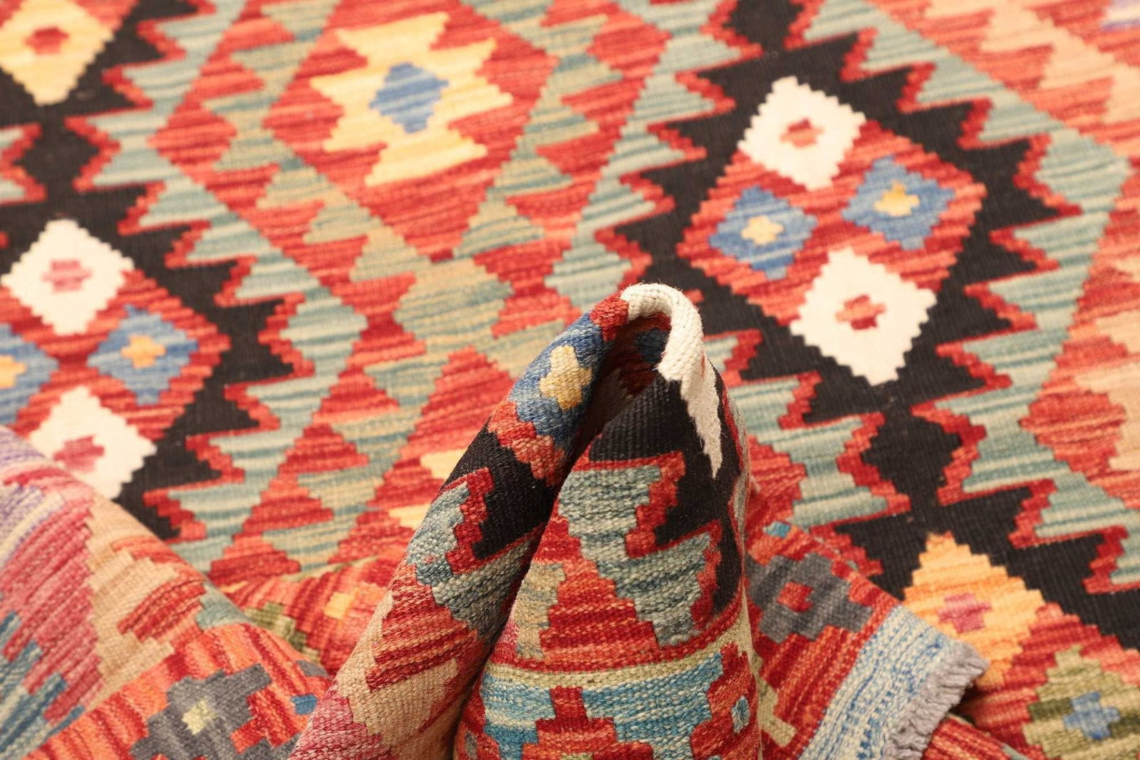 Teppiche aus diesen Regionen zeichnen sich oft durch lebendige Farben und komplexe geometrische Muster aus, die symbolisch für die Kultur und die Geschichte der jeweiligen Regionen stehen. Auch der Kelim Teppich spiegelt diese Tradition wieder: Er ist ein Resultat verfeinerter Techniken, die über Jahrhunderte perfektioniert wurden.