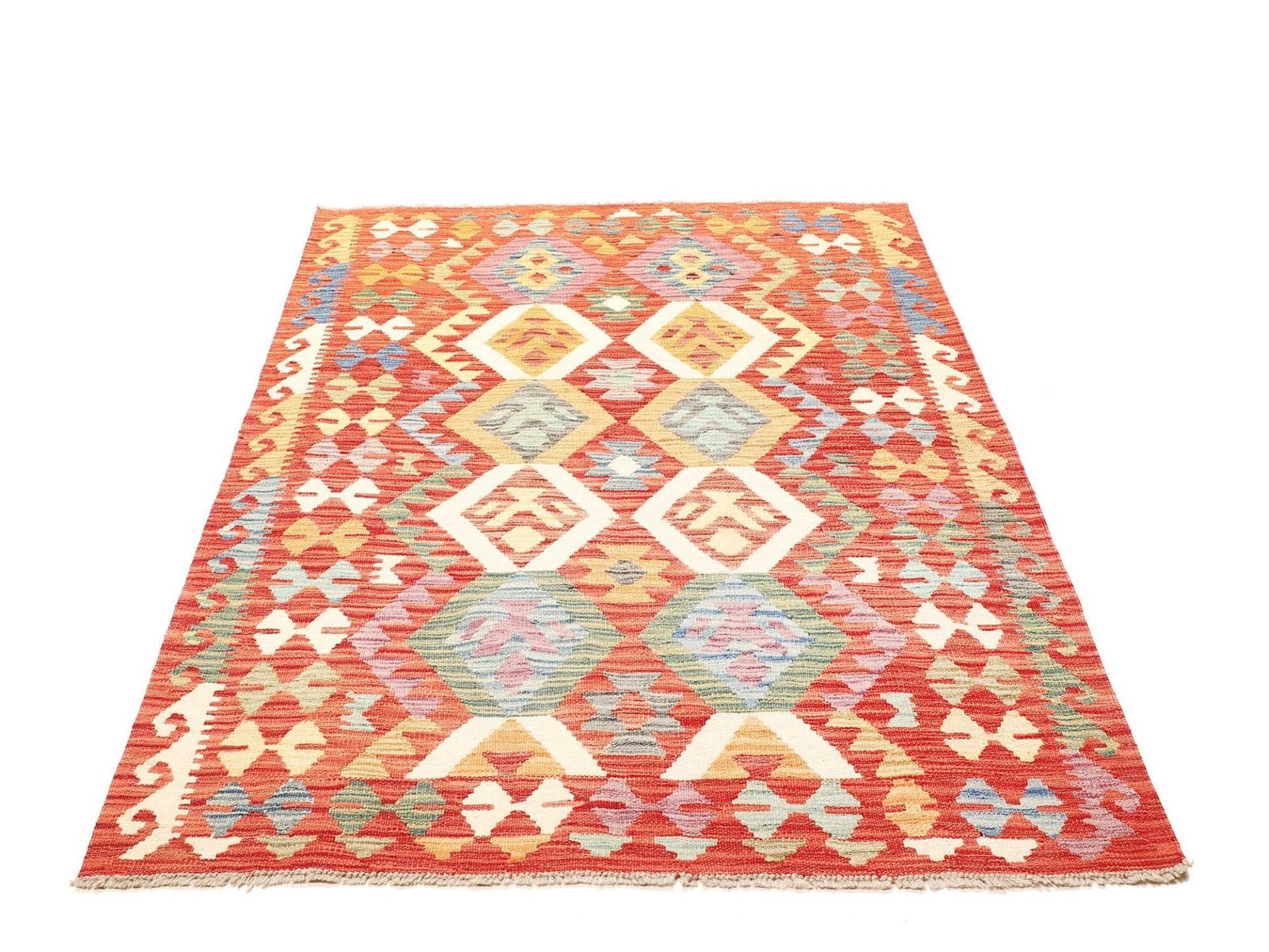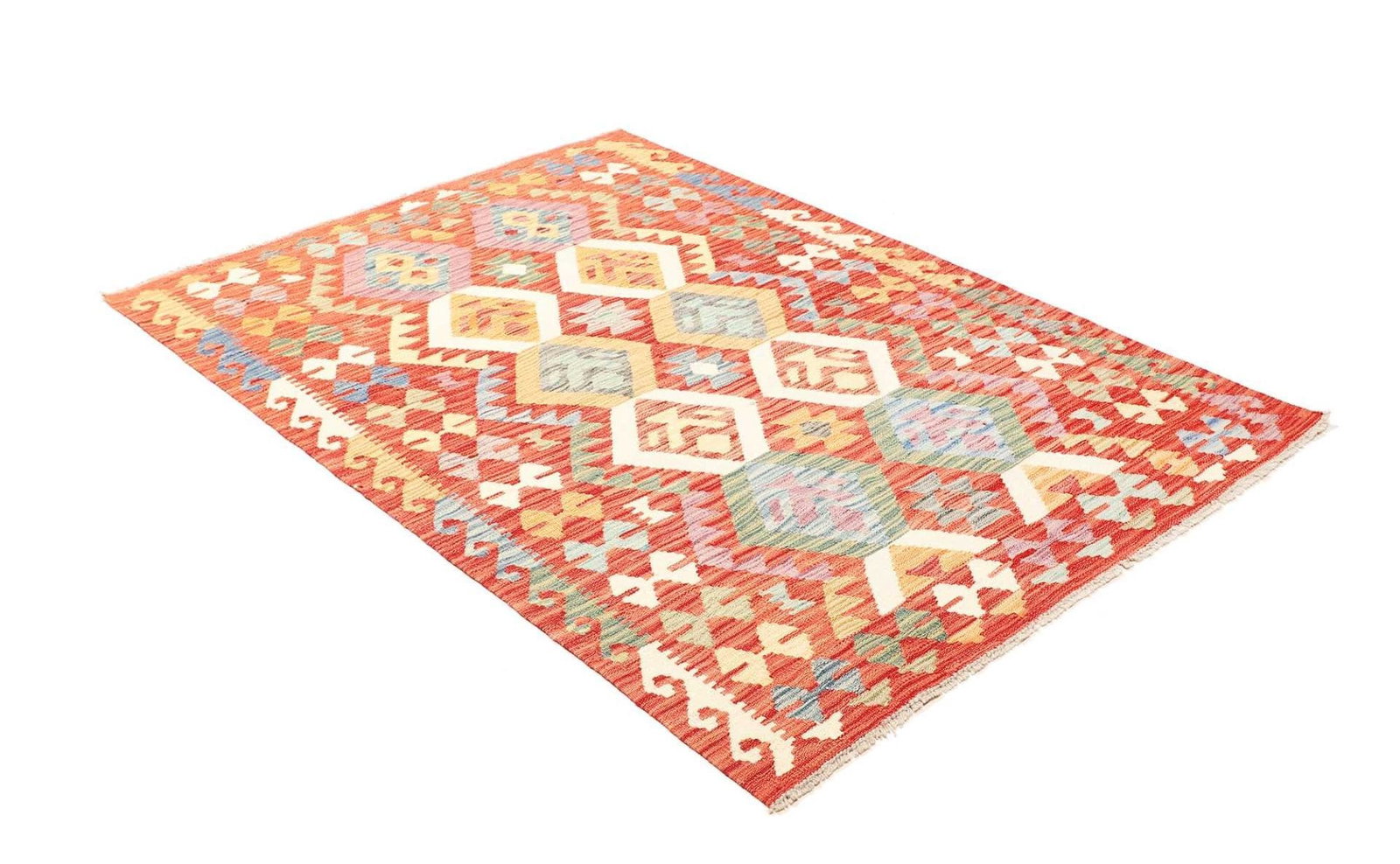 Kelim Teppich 126 x 178cm, handgewebt, rustikales Flair, Wolle