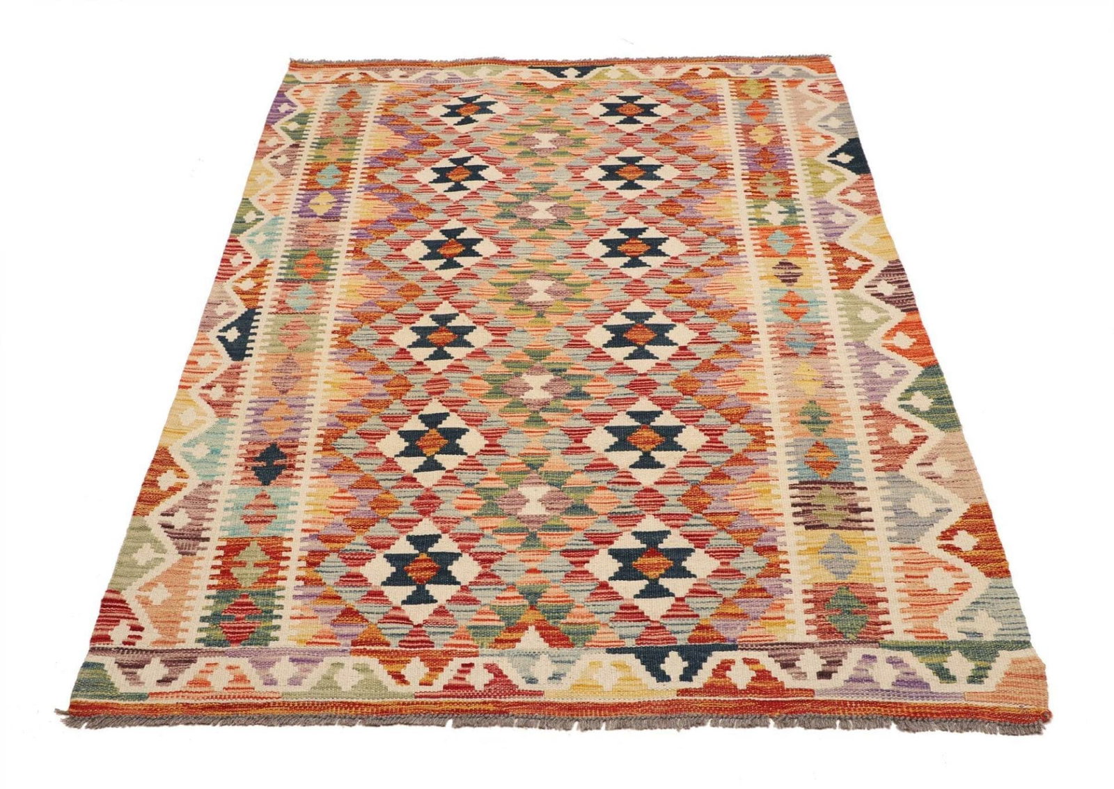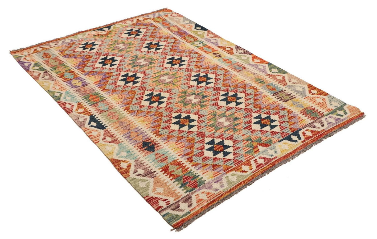 Kelim Teppich 127 x 177 cm aus Schurwolle, handgewebt, rustikal