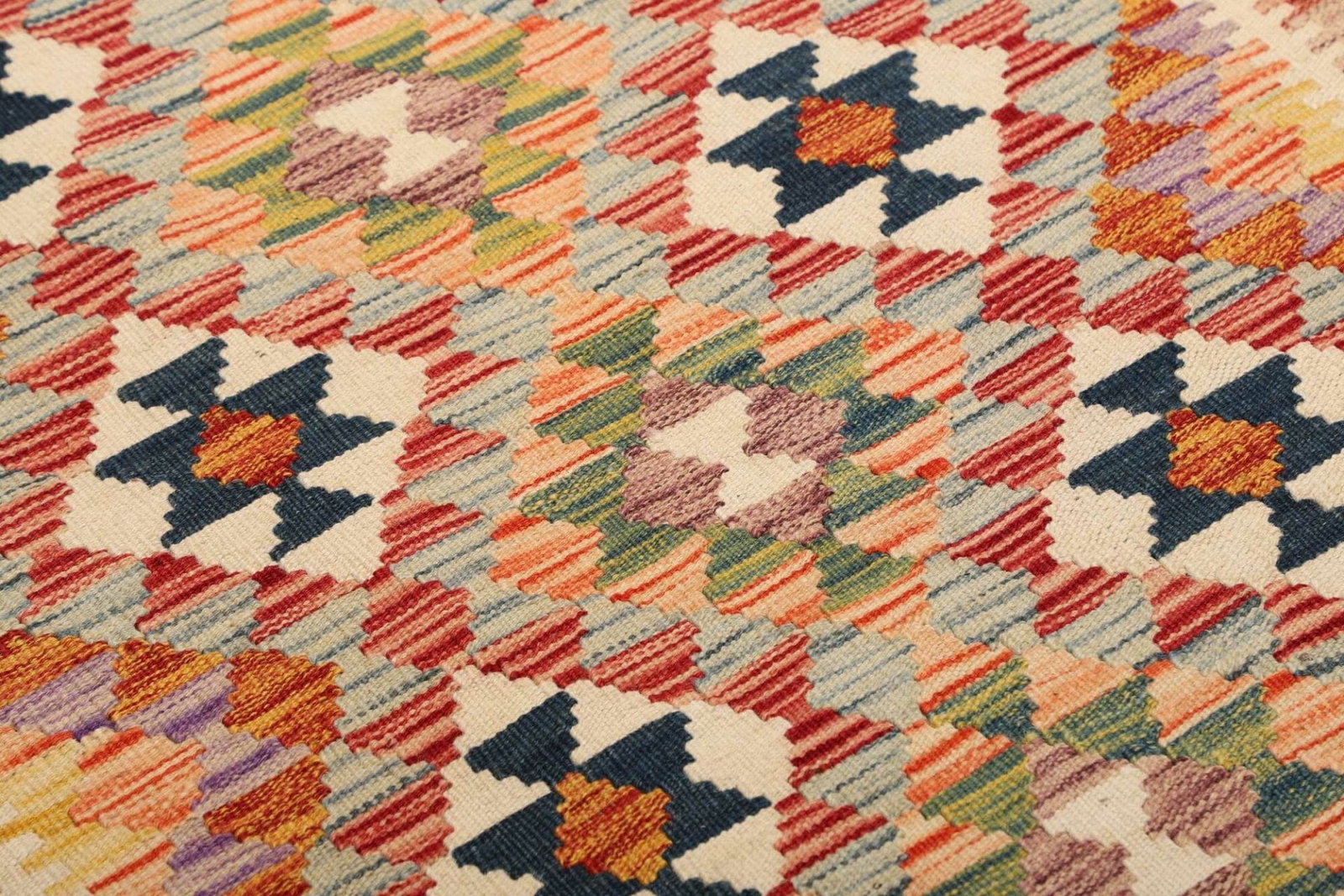 Kelim Teppich aus Schurwolle, handgewebt, rustikal