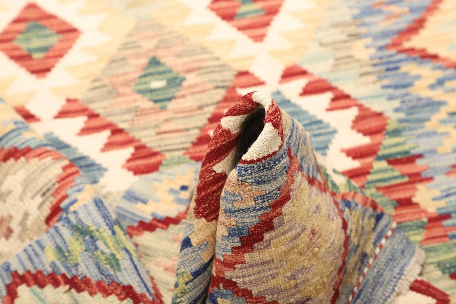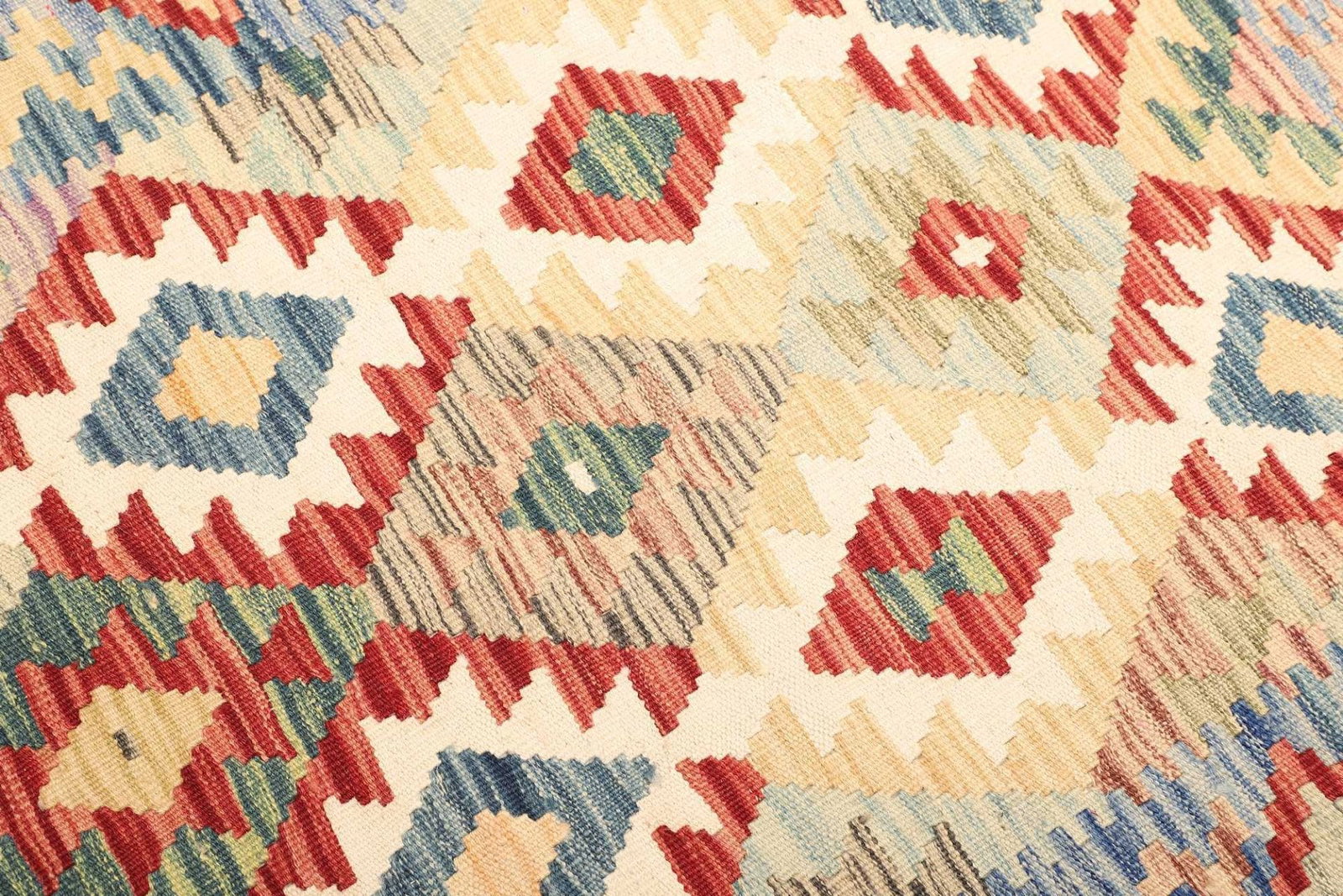 Handgewebte Teppiche wie dieser Kelim sind Unikate und stechen durch ihre hohe Qualität und Kunstfertigkeit hervor. Jedes Stück erzählt eine Geschichte und spiegelt die Tradition und Kultur der Region wider, aus der es stammt, was sie besonders wertvoll macht.