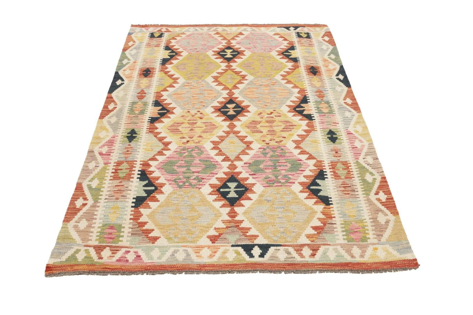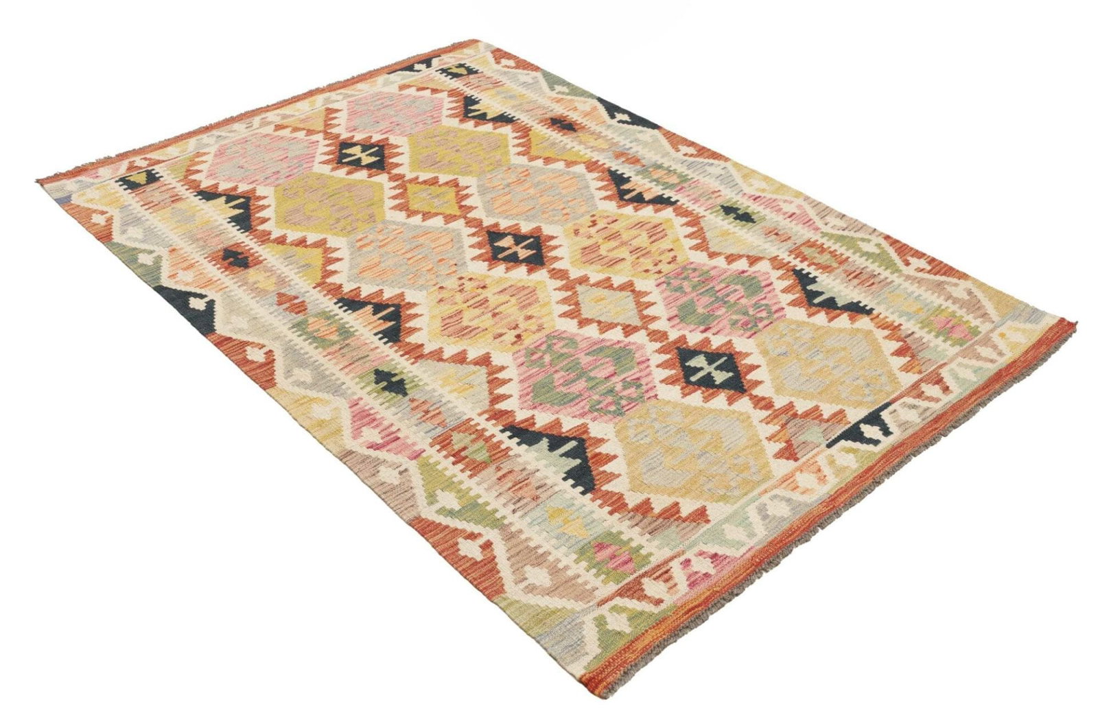 407$Ursprünglicher Preis war: 407$308$Aktueller Preis ist: 308$Kelimteppich | Knotendichte: ca. 200.000 Knoten/m² | Material: 100% Schurwolle | Größe: 127 x 181 cm | Zustand: Handgewebt | Herkunft: Pakistan | Florhöhe: ca. 5 mm | Kette: 100% Baumwolle