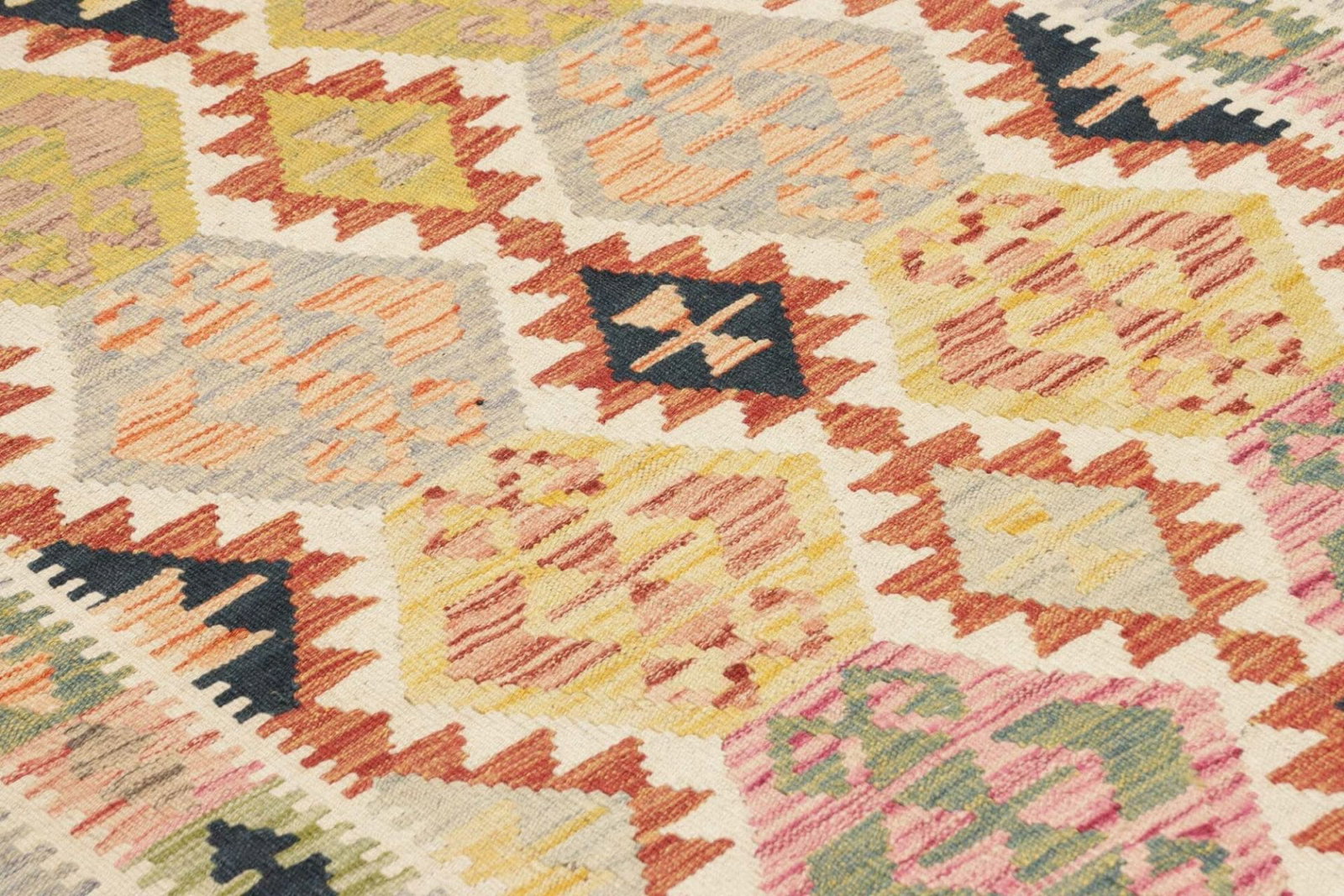 Kelim Teppich aus Schurwolle, handgewebt, rustikal
