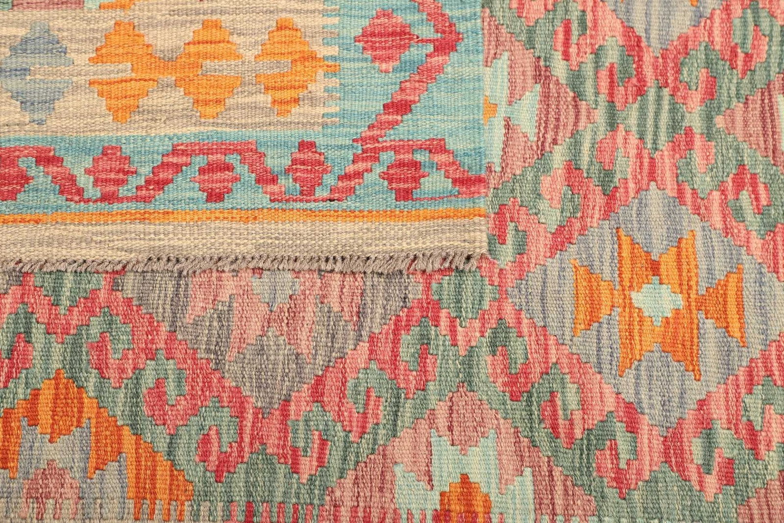 578$ In den WarenkorbKelim 215 x 144 cm – Handgewebt mit identischem Muster auf Vorder- und Rückseite – Orientteppich