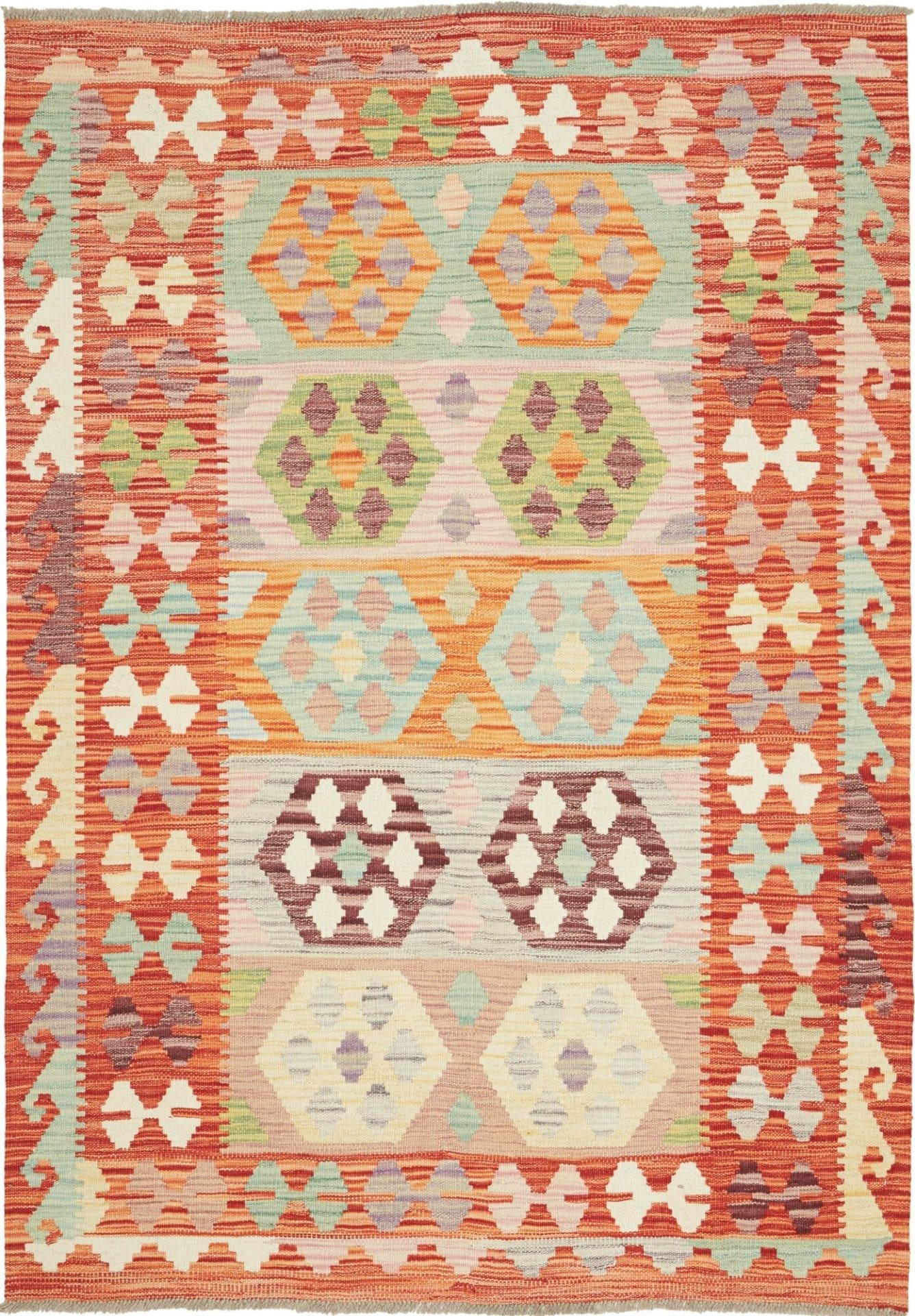 Kelim Teppiche sind ein fester Bestandteil der orientalischen Teppichtradition. Obwohl im Titel keine spezifische Herkunft genannt ist, können wir sagen, dass die Ursprünge der Kelim-Technik in verschiedenen Regionen des Orients liegen, einschließlich Anatolien, dem Kaukasus und Afghanistan. In diesen Regionen wird die Kunst des Teppichwebens seit Jahrhunderten praktiziert und weitergegeben.