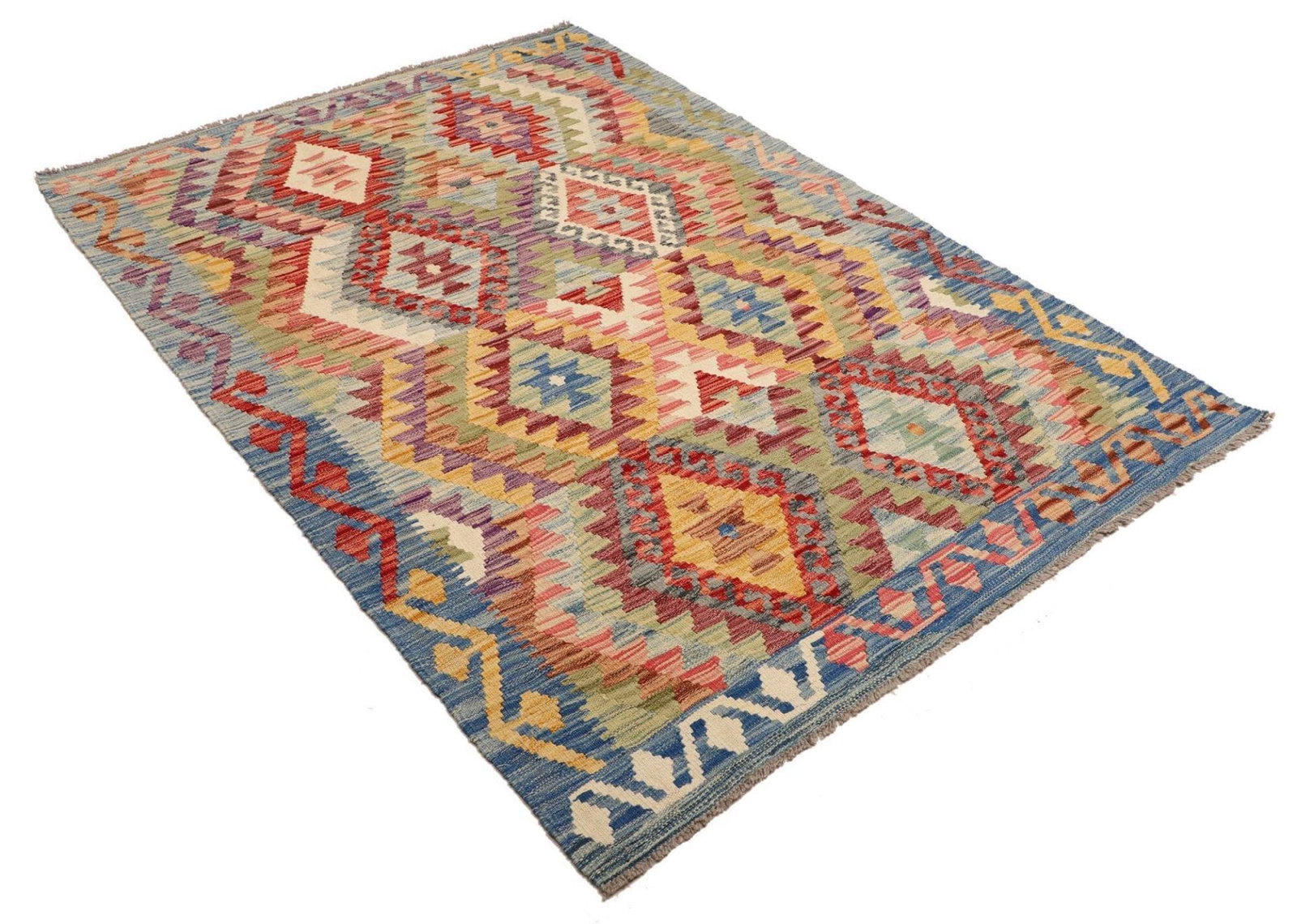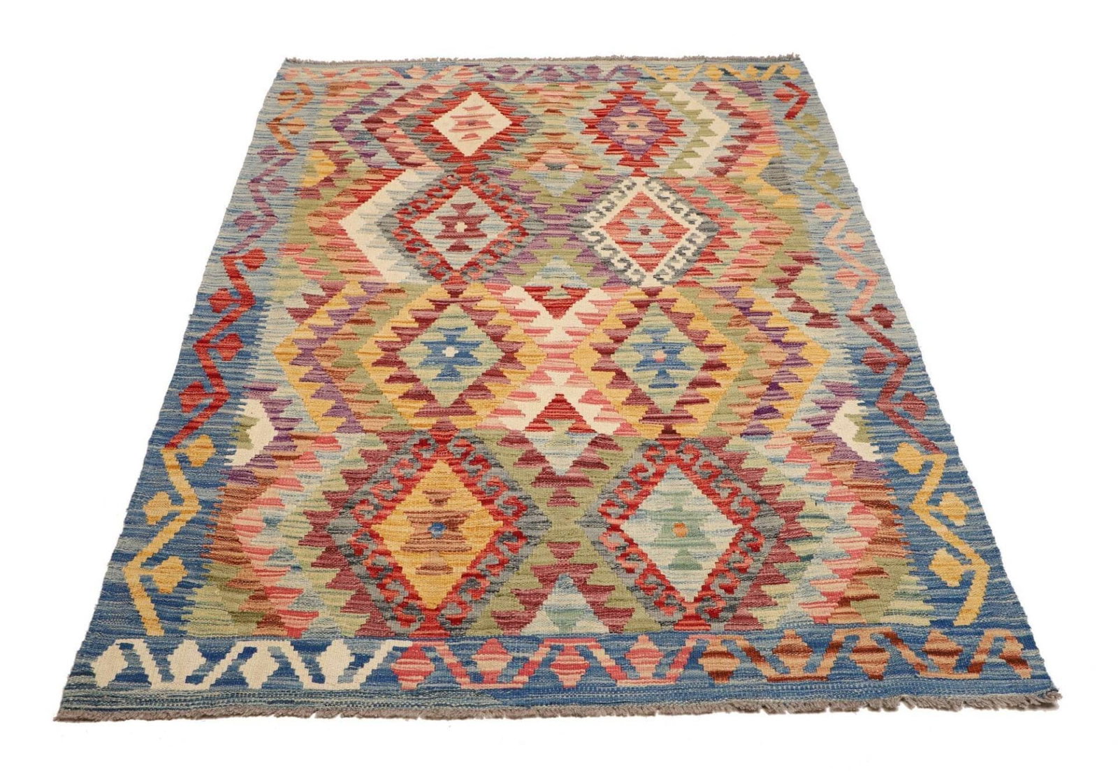 Kelim Teppich | Knotendichte: ca. 200.000 Knoten/m² | Material: 100% Schurwolle | Größe: 128×182 cm | Zustand: Handgewebt | Herkunft: Pakistan | Florhöhe: ca. 5 mm | Kette: 100% Baumwolle