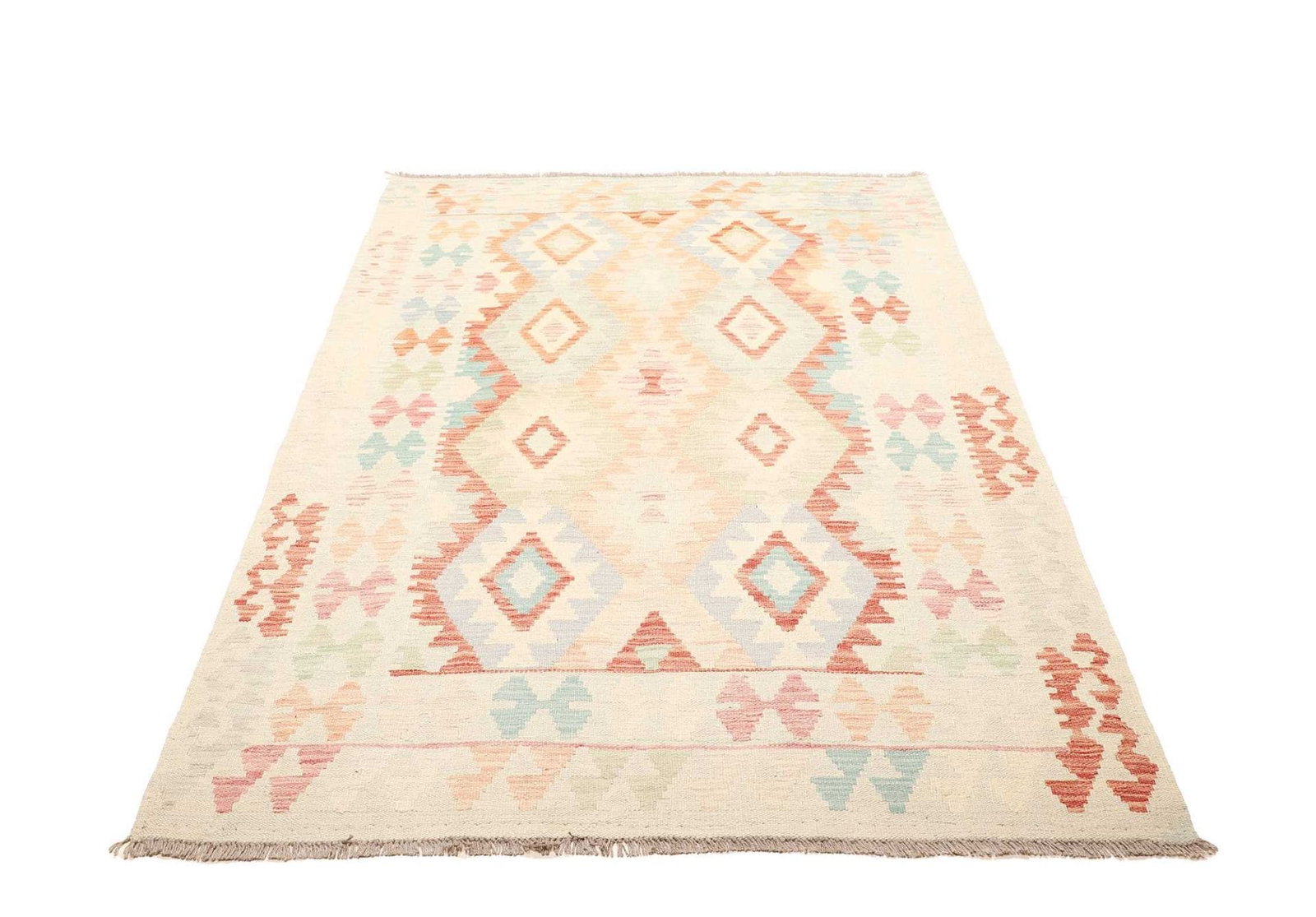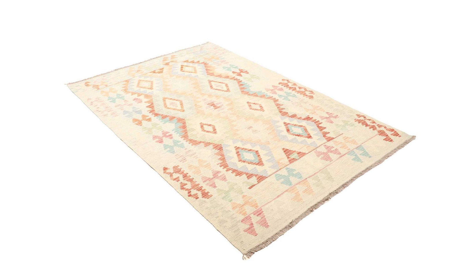 458$Ursprünglicher Preis war: 458$336$Aktueller Preis ist: 336$Handgewebter Kelim | Knotendichte: ca. 200.000 Knoten/m² | Flor: 100% Schurwolle | Kette: 100% Baumwolle | Größe: 128×190 cm | Herkunft: Pakistan | Zustand: Sehr gut