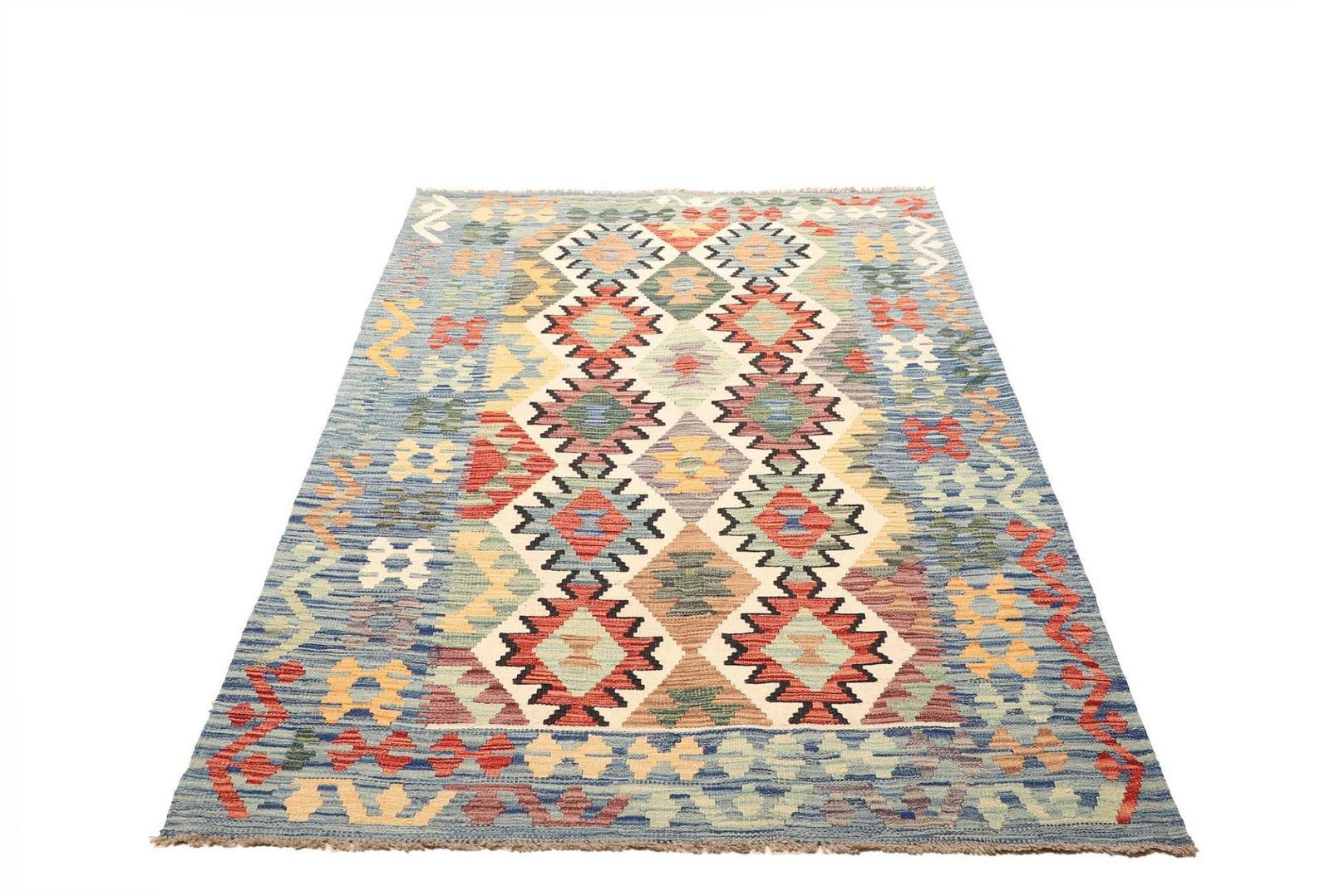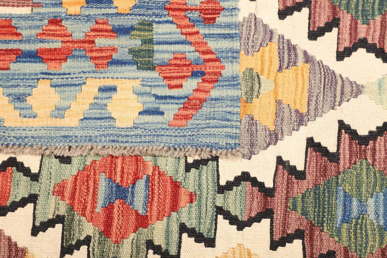 971$ In den WarenkorbKelim 205 x 150 cm – handgewebt mit doppeltem Muster, vielseitig einsetzbar als Teppich oder Wandbehang – handgewebt, Orientteppich