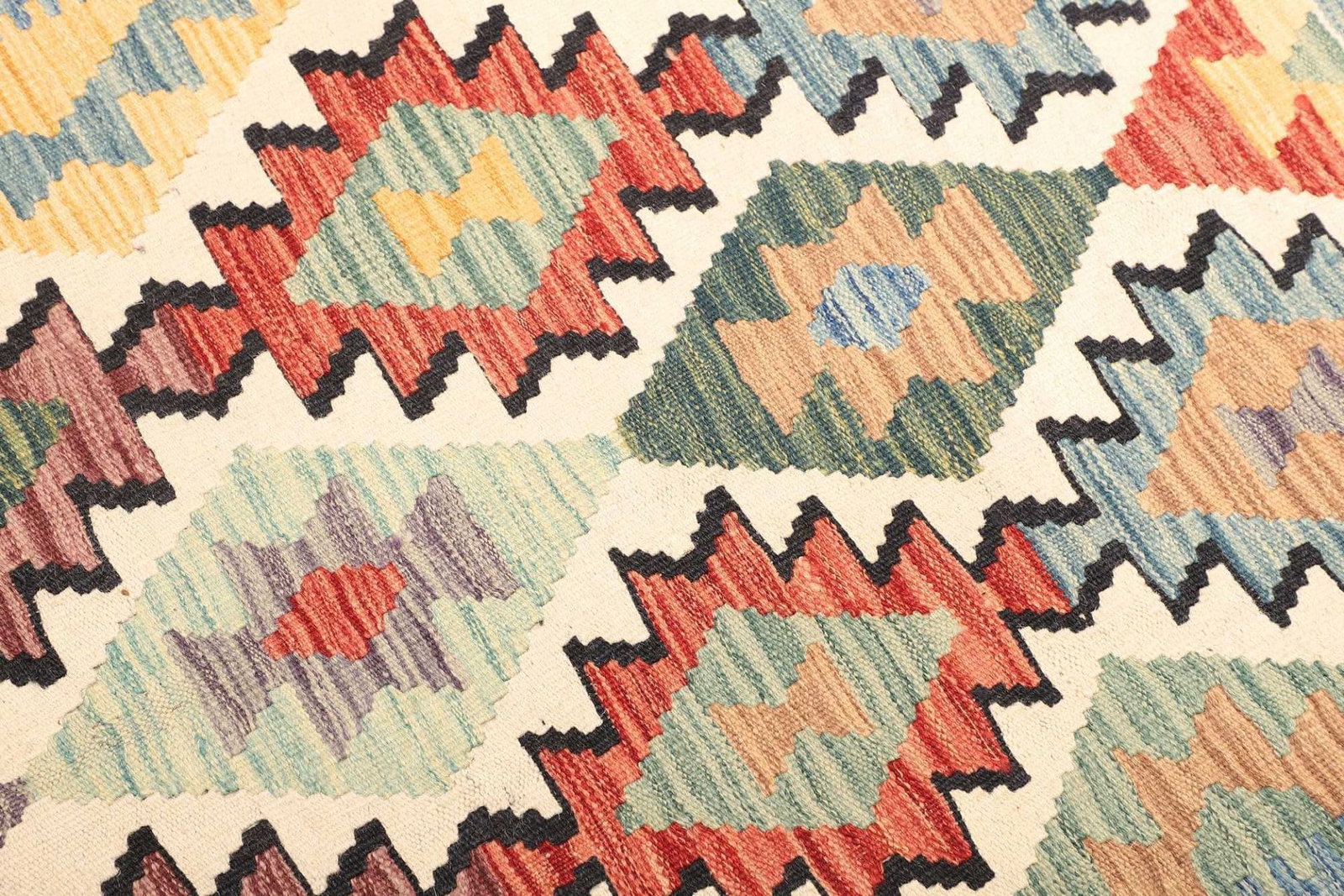 Kelim Teppich aus Schurwolle, rustikales Design, handgewebt