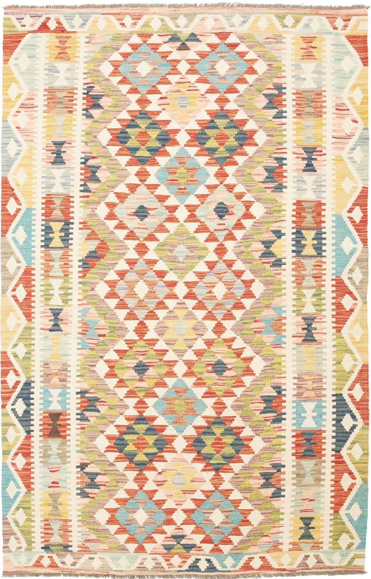 971$ In den WarenkorbKelim 215 x 144 cm – Handgewebt mit identischem Muster auf Vorder- und Rückseite – Orientteppich