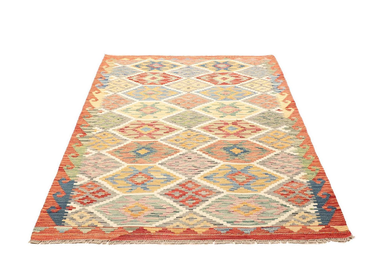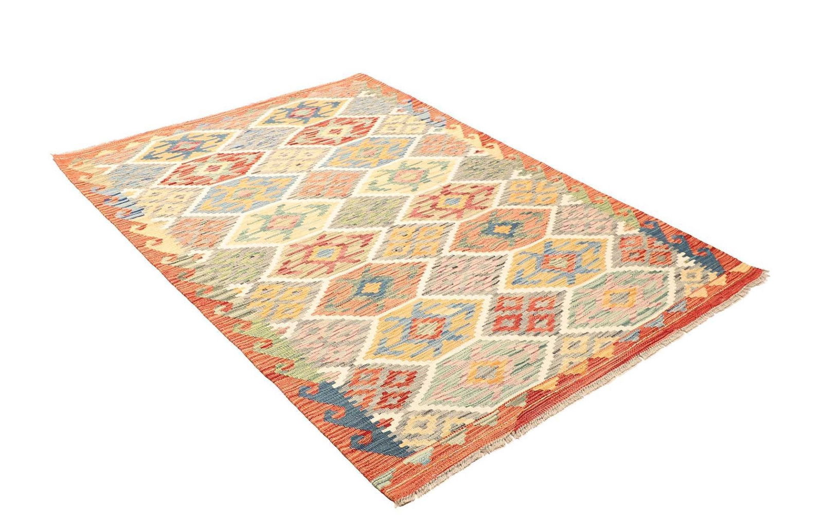 Kelim Teppich 129 x 178 cm aus Schurwolle, handgewebt, rustikal