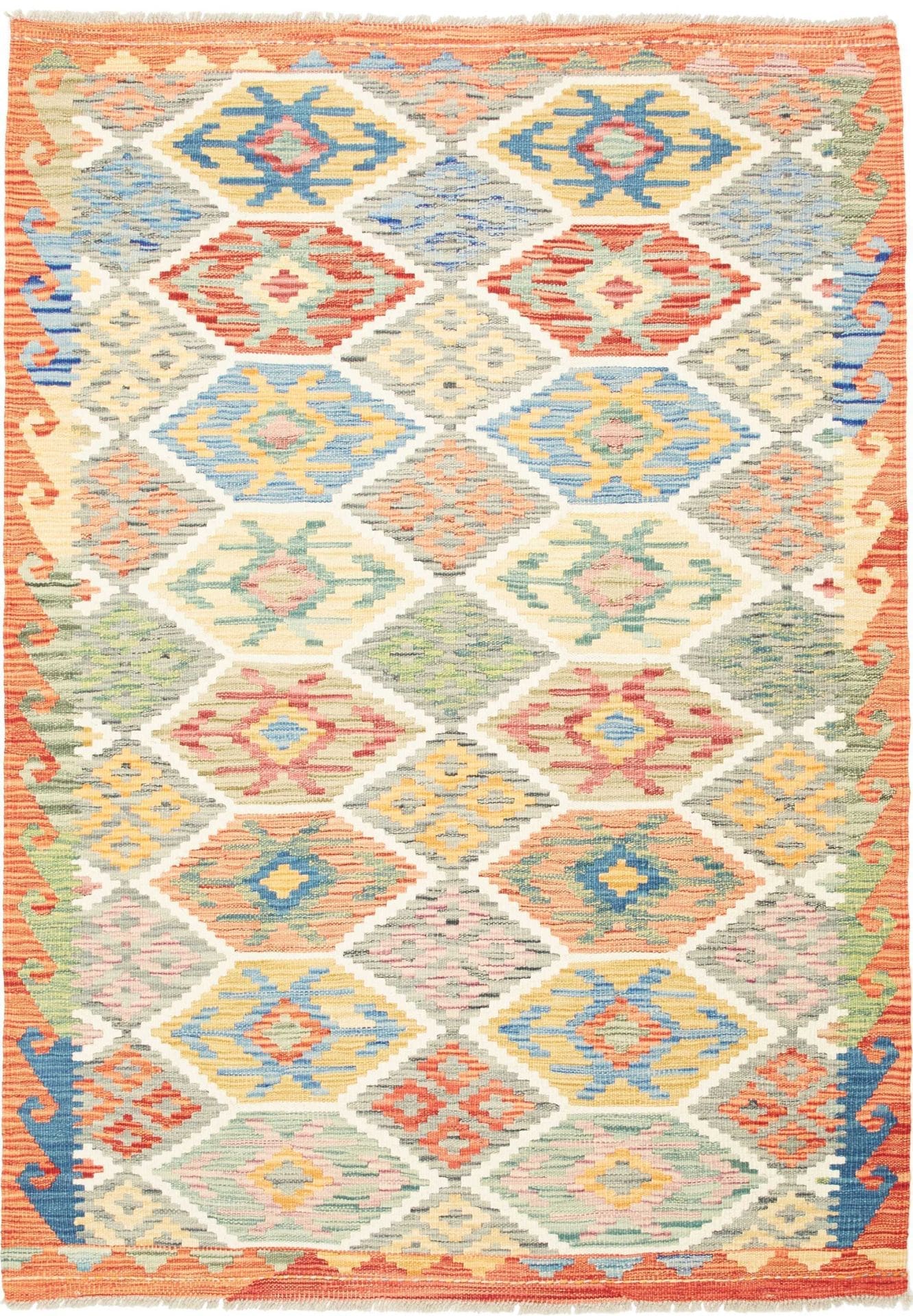 407$Ursprünglicher Preis war: 407$288$Aktueller Preis ist: 288$Kelim Teppich | Knotendichte: ca. 200.000 Knoten/m² | Material: 100% Schurwolle | Größe: 129×178 cm | Höhe: ca. 5 mm | Kette: 100% Baumwolle | Herkunft: Pakistan | Zustand: Handgewebte Qualität