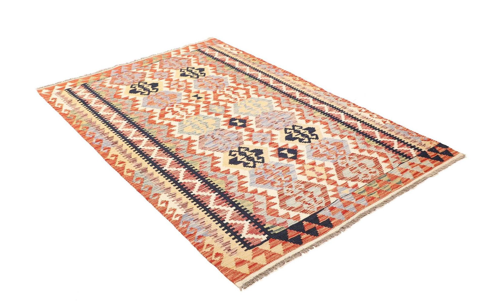 Kelim Teppich 129 x 181cm aus Schurwolle, handgewebt, rustikales Flair