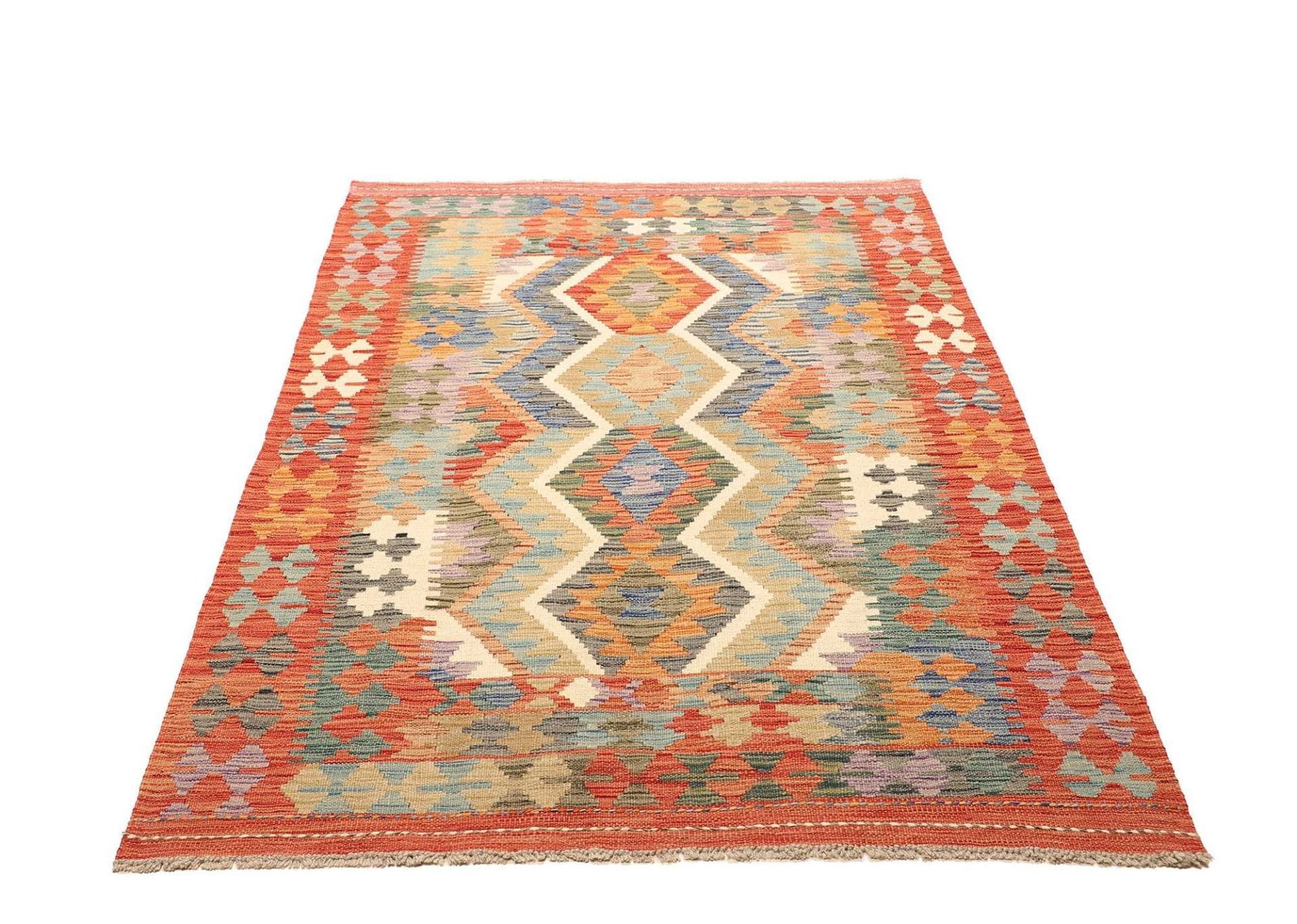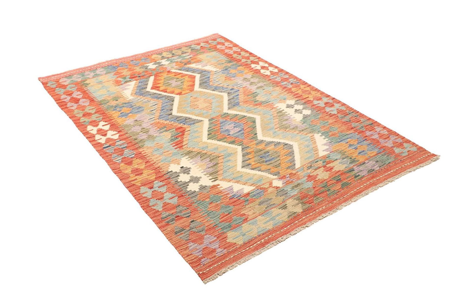 Kelim Teppich 129 x 182cm aus Schurwolle, handgewebt, rustikal