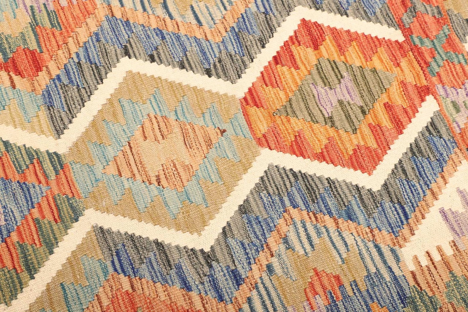 Kelim Teppich aus Schurwolle, handgewebt, rustikal