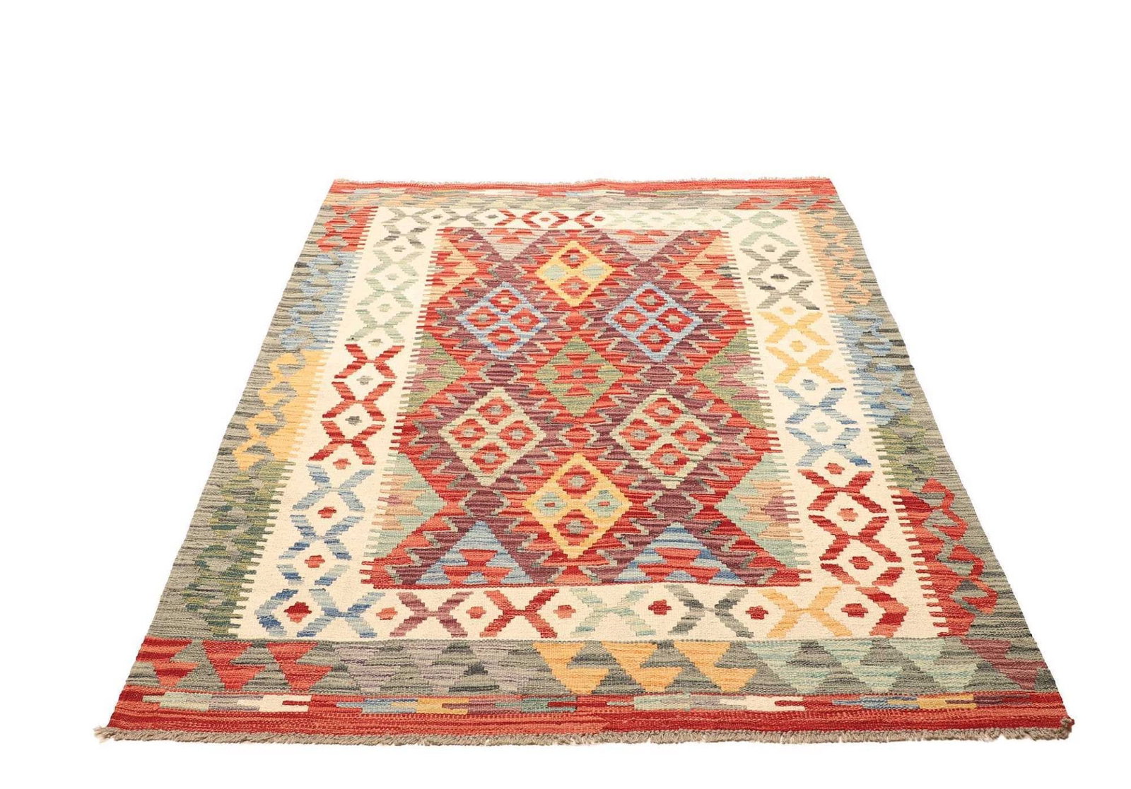 Kelim Teppich 130 x 175cm, handgewebt, rustikales Flair, Wolle