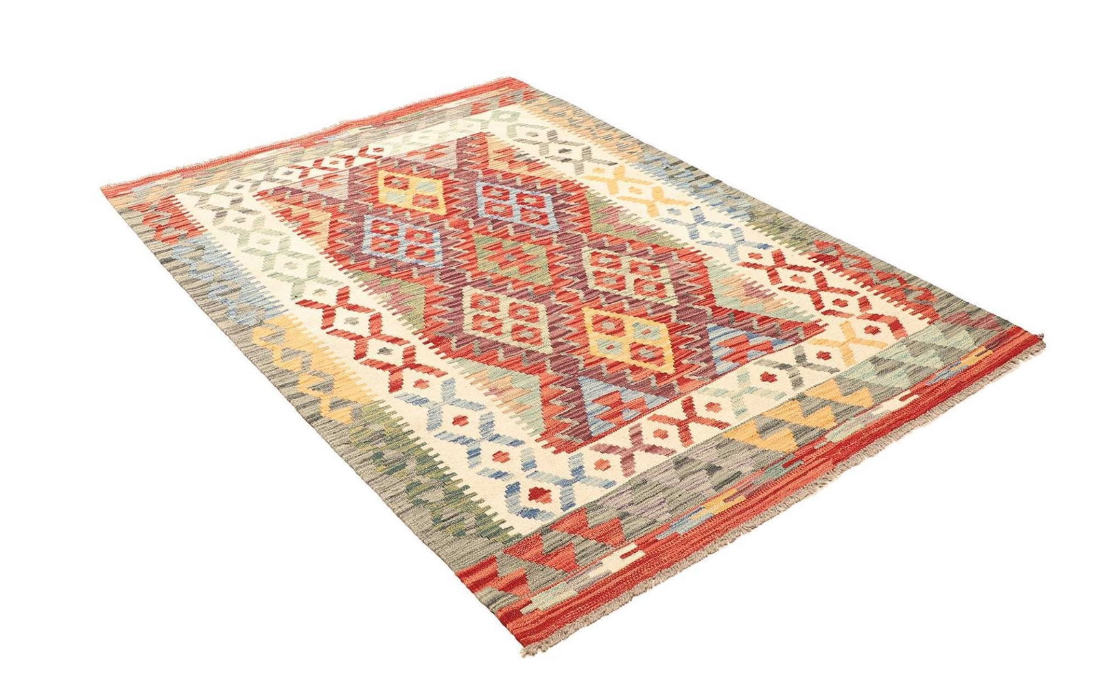 Kelim Teppich | Knotendichte: ca. 200.000 Knoten/m² | Flor: 100% Schurwolle | Kette: 100% Baumwolle | Größe: 130×175 cm | Herkunft: Pakistan | Zustand: Handgewebte Qualität, beidseitig verwendbar