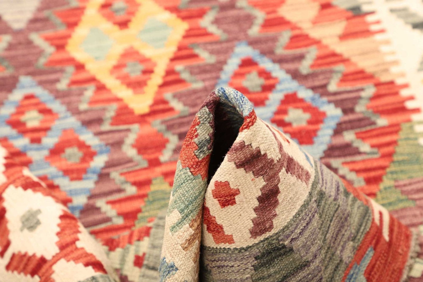 Dieser handgewebte Kelim Teppich besteht aus 100% reiner Wolle, die für ihre Langlebigkeit und Warmhaltung bekannt ist. Wolle hat von Natur aus schmutzabweisende Eigenschaften und ist leicht zu reinigen, was sie ideal für stark frequentierte Bereiche macht. Durch die besondere Webtechnik entstehen flache und strapazierfähige Teppiche, die gleichzeitig weich und angenehm zu berühren sind. Die sorgfältige Verarbeitung garantiert, dass jeder Teppich ein Unikat ist, mit Charakter und Individualität.