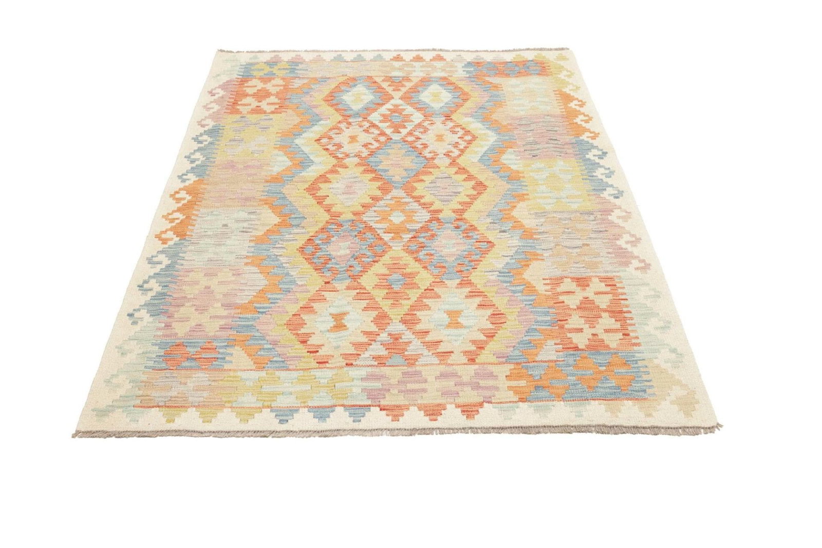 Kelim Teppich 131 x 173 cm, handgewebt, rustikales Flair, Wolle