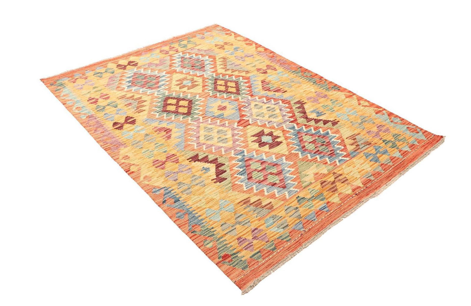 Kelim Teppich 131 x 177 cm aus Schurwolle, handgewebt, rustikal
