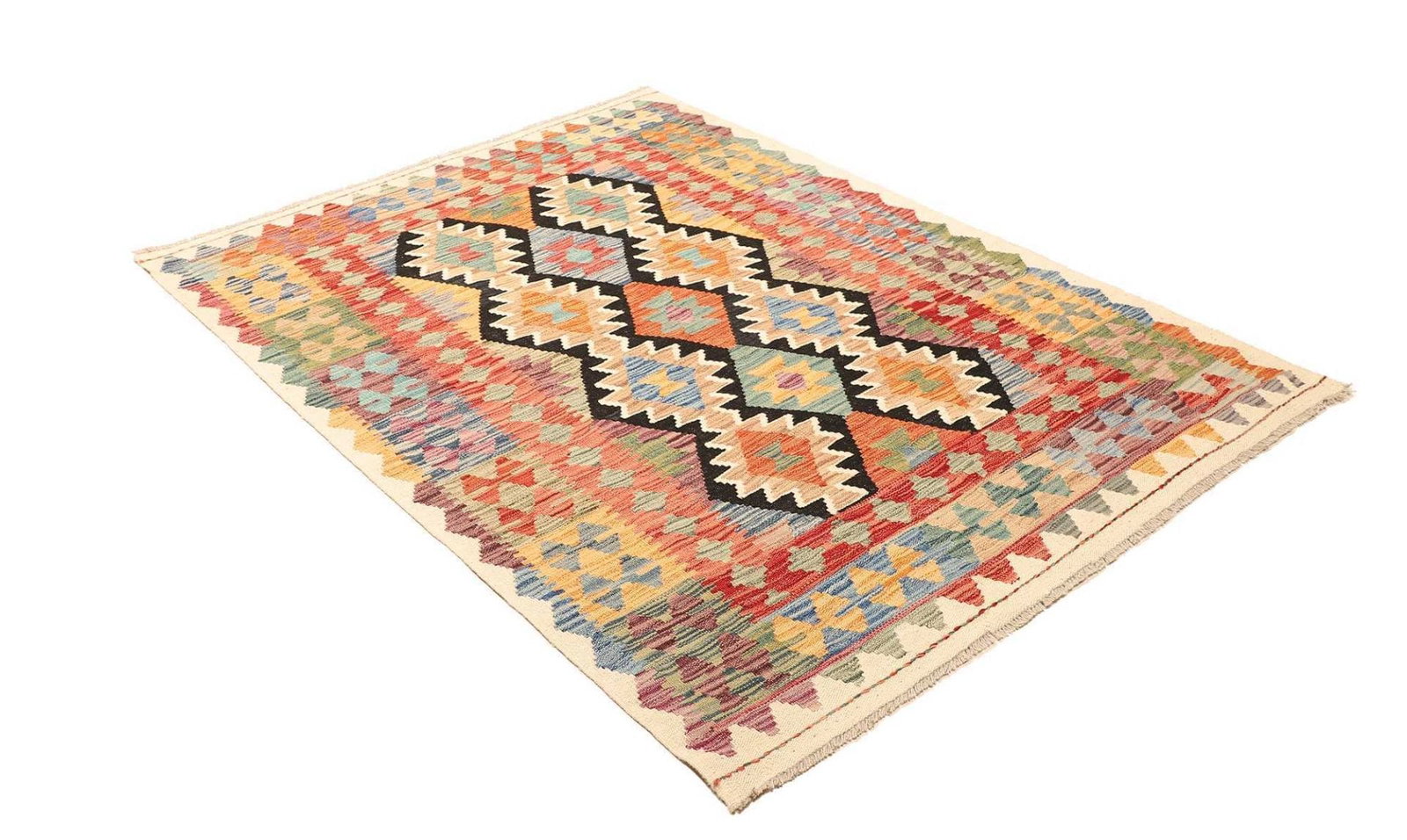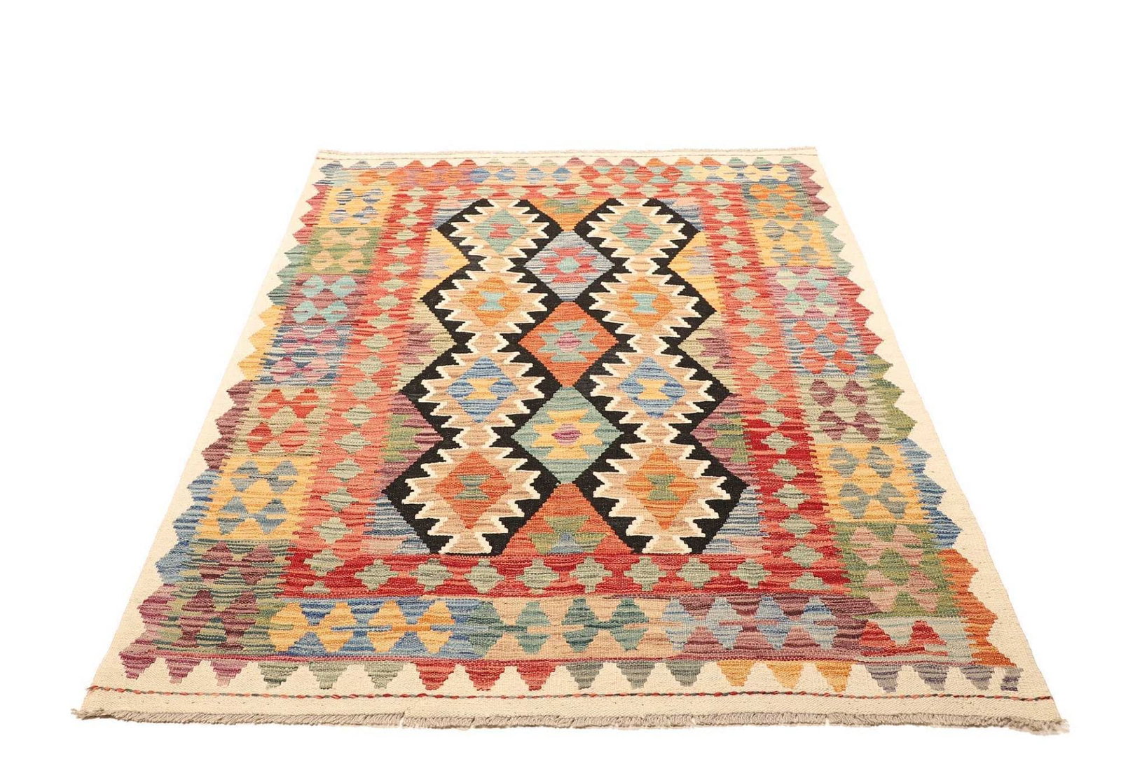 Kelim Teppich 132 x 176 cm, Schurwolle, bunt, handgewebt
