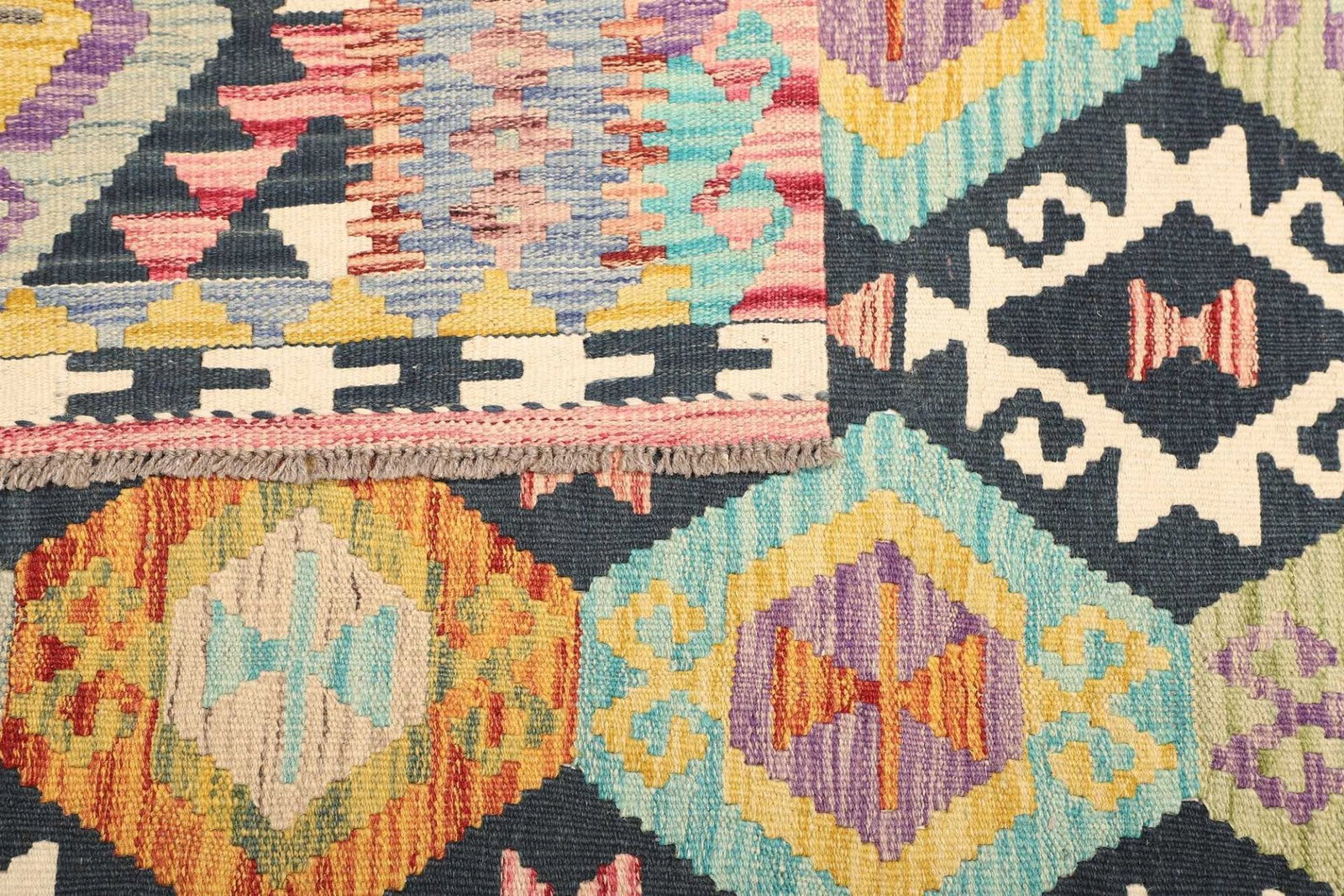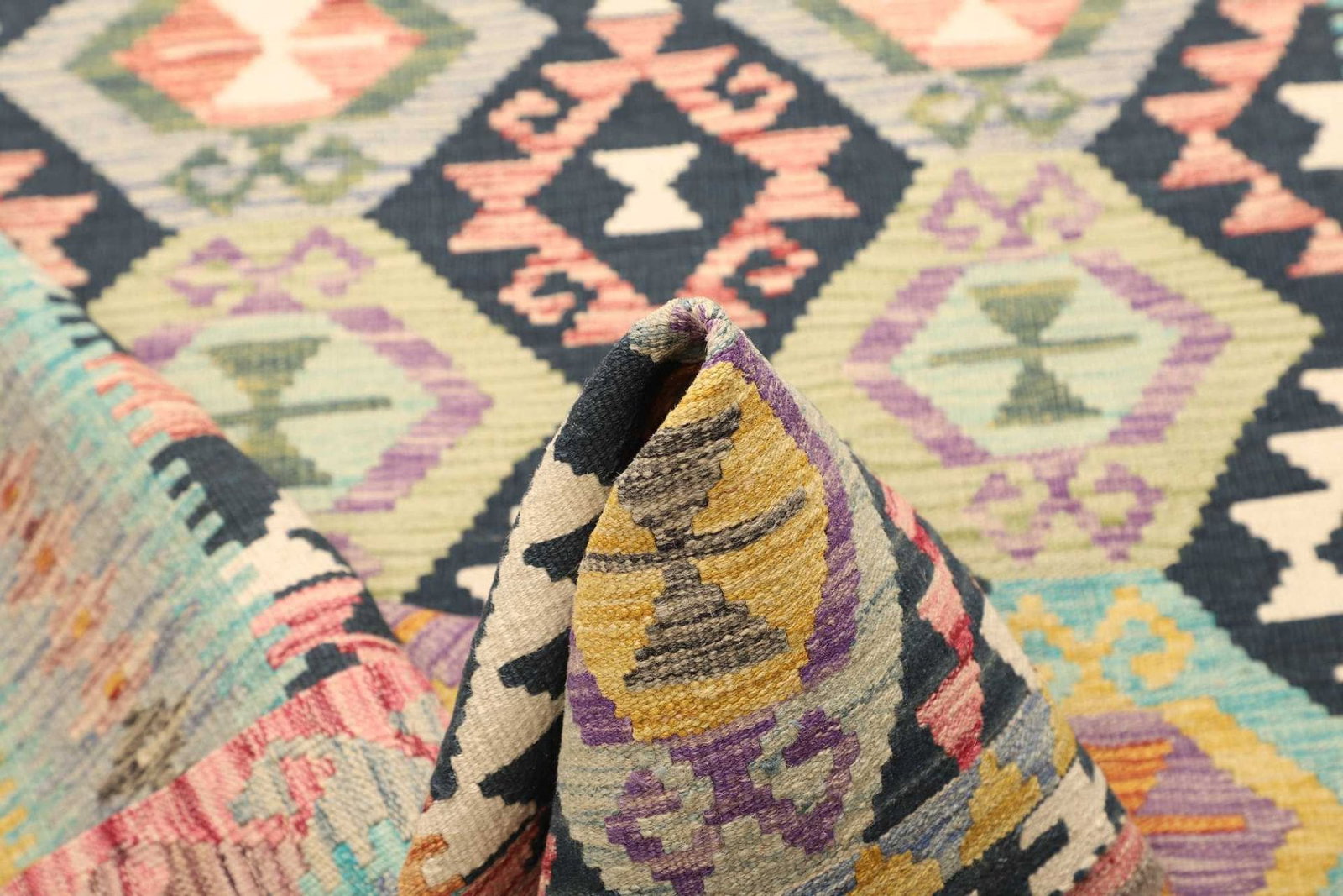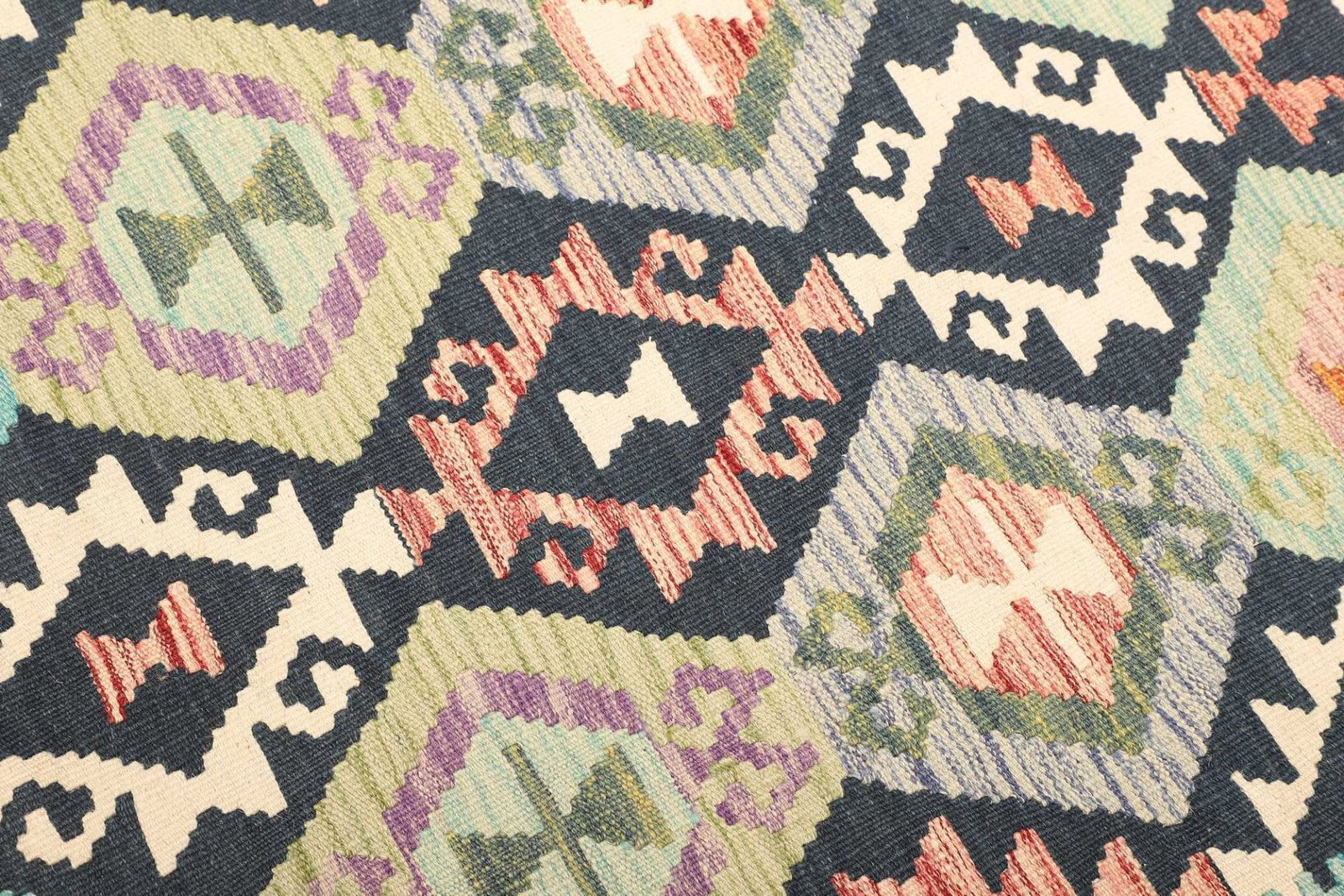 Ein weiteres Merkmal, das diesen Teppich besonders macht, ist die Knotendichte. Bei handgewebten Kelim Teppichen ist diese bewusst niedriger gehalten als bei handgeknüpften Teppichen, was dem Kelim seinen typischen flachen und leichten Charakter verleiht. Dies macht ihn auch ideal für den Einsatz in Räumen mit Fußbodenheizung.