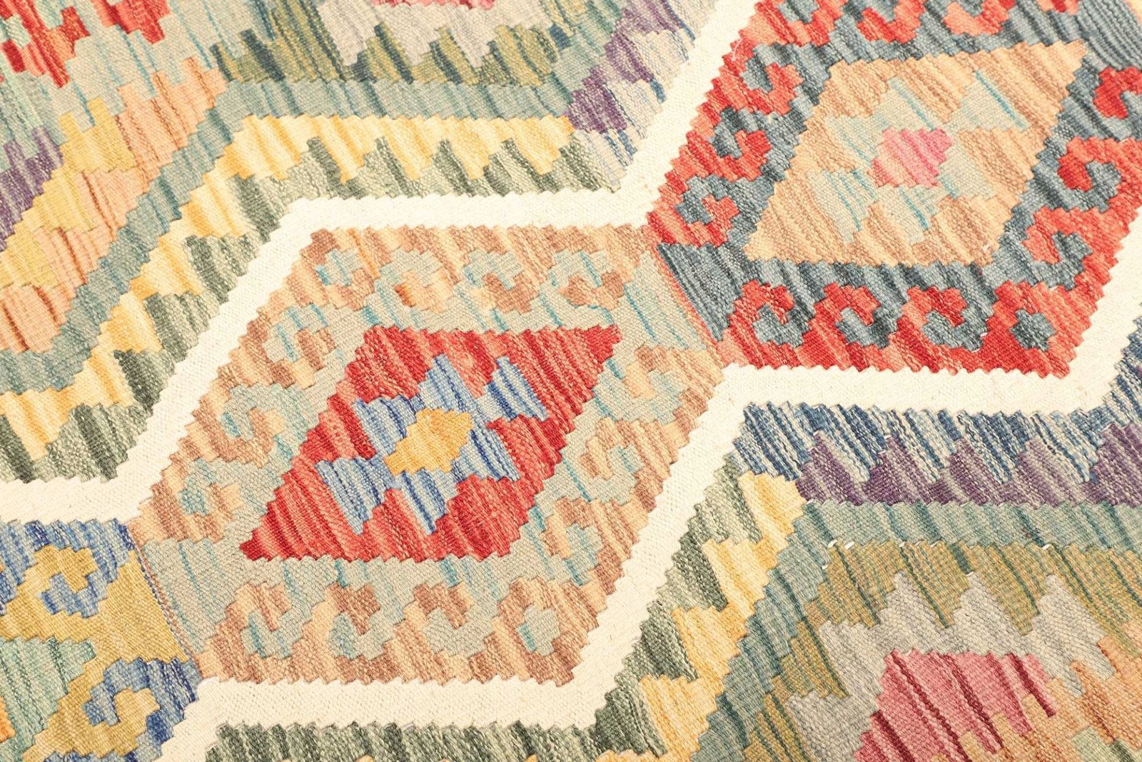Wolle ist ein traditionelles Material für Teppiche und bietet zahlreiche Vorteile. Sie ist von Natur aus schmutzabweisend, was den Pflegeaufwand minimiert, und sie sorgt für ein angenehm warmes Wohnklima. Der Kelim Teppich ist durch eine spezielle handgewebte Technik entstanden, die ihm eine flache und dennoch robuste Struktur verleiht. Bei der Herstellung kommt keine chemische Nachbehandlung zum Einsatz, was bedeutet, dass der Teppich sowohl für Allergiker als auch für umweltbewusste Käufer geeignet ist.