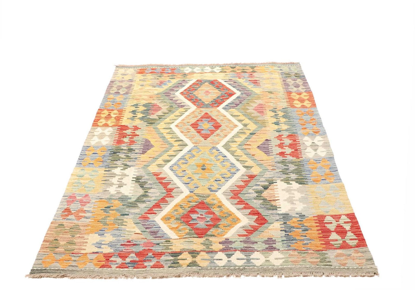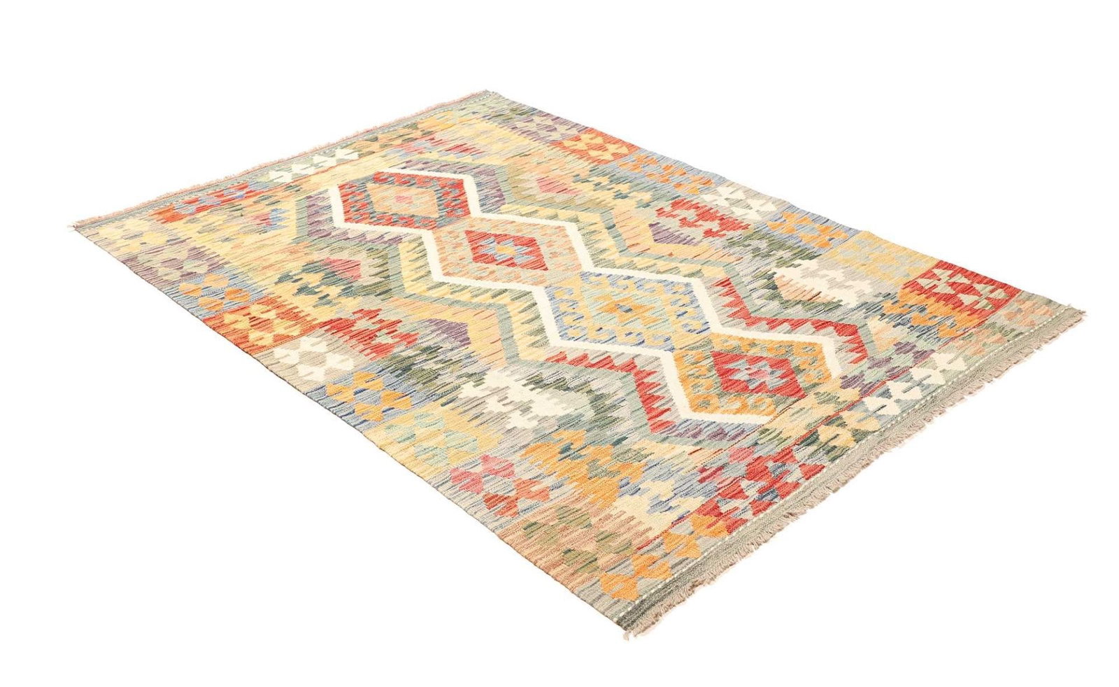 407$Ursprünglicher Preis war: 407$320$Aktueller Preis ist: 320$Kelim Teppich | Herkunft: Pakistan | Knotendichte: 200.000 Knoten/m² | Material: 100% Schurwolle (Flor), 100% Baumwolle (Kette) | Größe: 132 x 182 cm | Höhe: ca. 5 mm | Handgewebte Qualität | Vielseitig einsetzbar als Teppich, Vorhang oder Wandschmuck