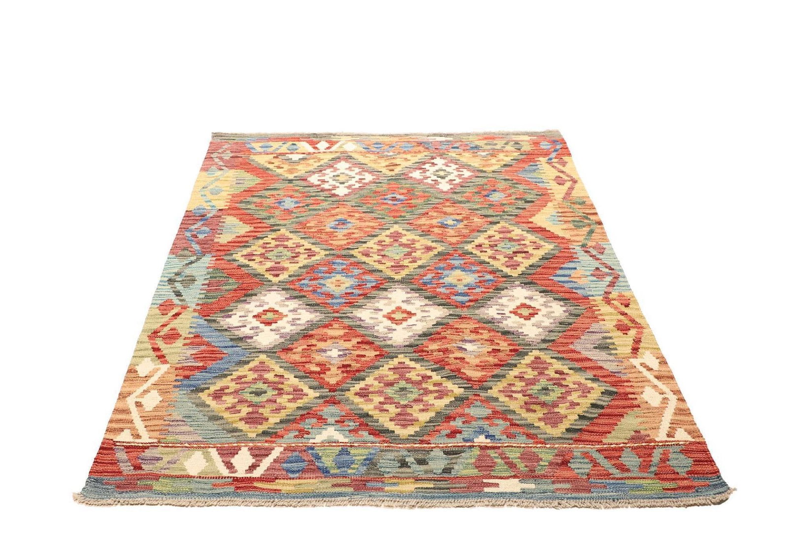 407$Ursprünglicher Preis war: 407$346$Aktueller Preis ist: 346$Kelim Teppich | Knotendichte: ca. 200.000 Knoten/m² | Material: 100% Schurwolle und 100% Baumwolle | Größe: 133×173 cm | Herkunft: Pakistan | Verarbeitung: Handgewebt | Höhe: ca. 5mm | Vielseitig einsetzbar: auch als Vorhang oder Wandschmuck geeignet