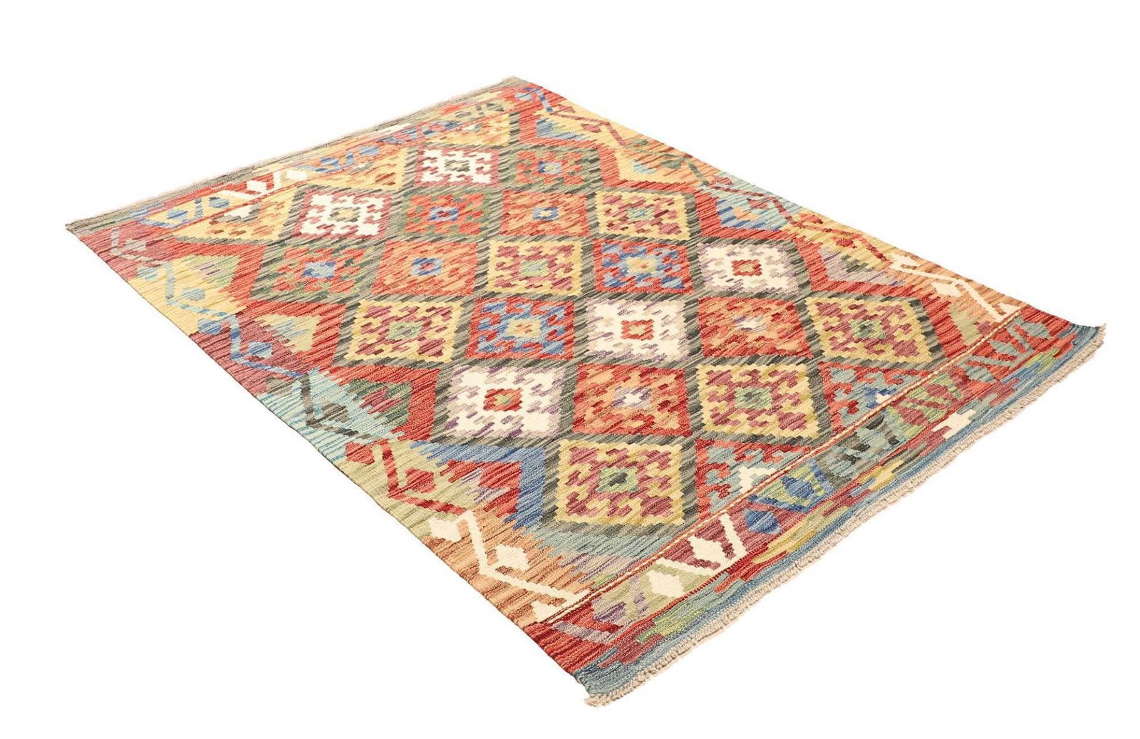 Kelim Teppich 133 x 173 cm aus Schurwolle, handgewebt, rustikal