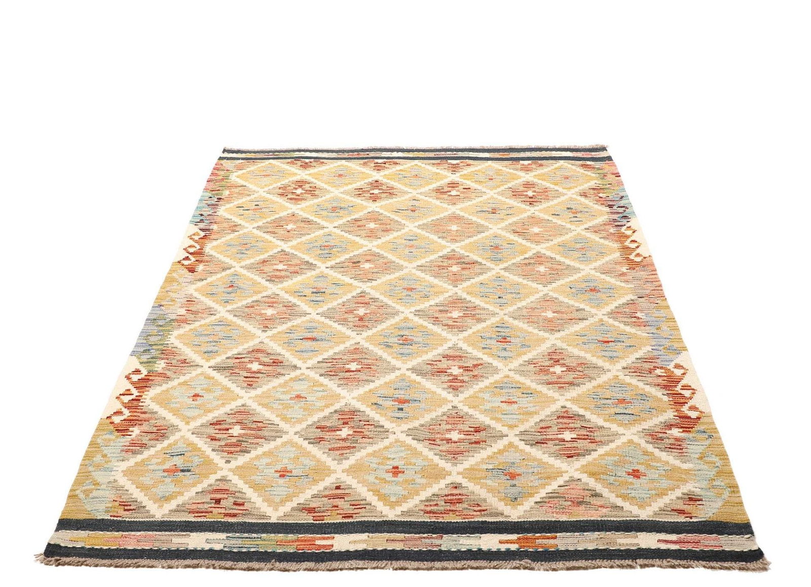 Handgewebter Kelim | Knotendichte: ca. 200.000 Knoten/m² | Material: 100% Schurwolle und 100% Baumwolle | Größe: 133×184 cm | Herkunft: Pakistan | Florhöhe: ca. 5 mm | Rustikales Flair, ideal für moderne Wohnräume