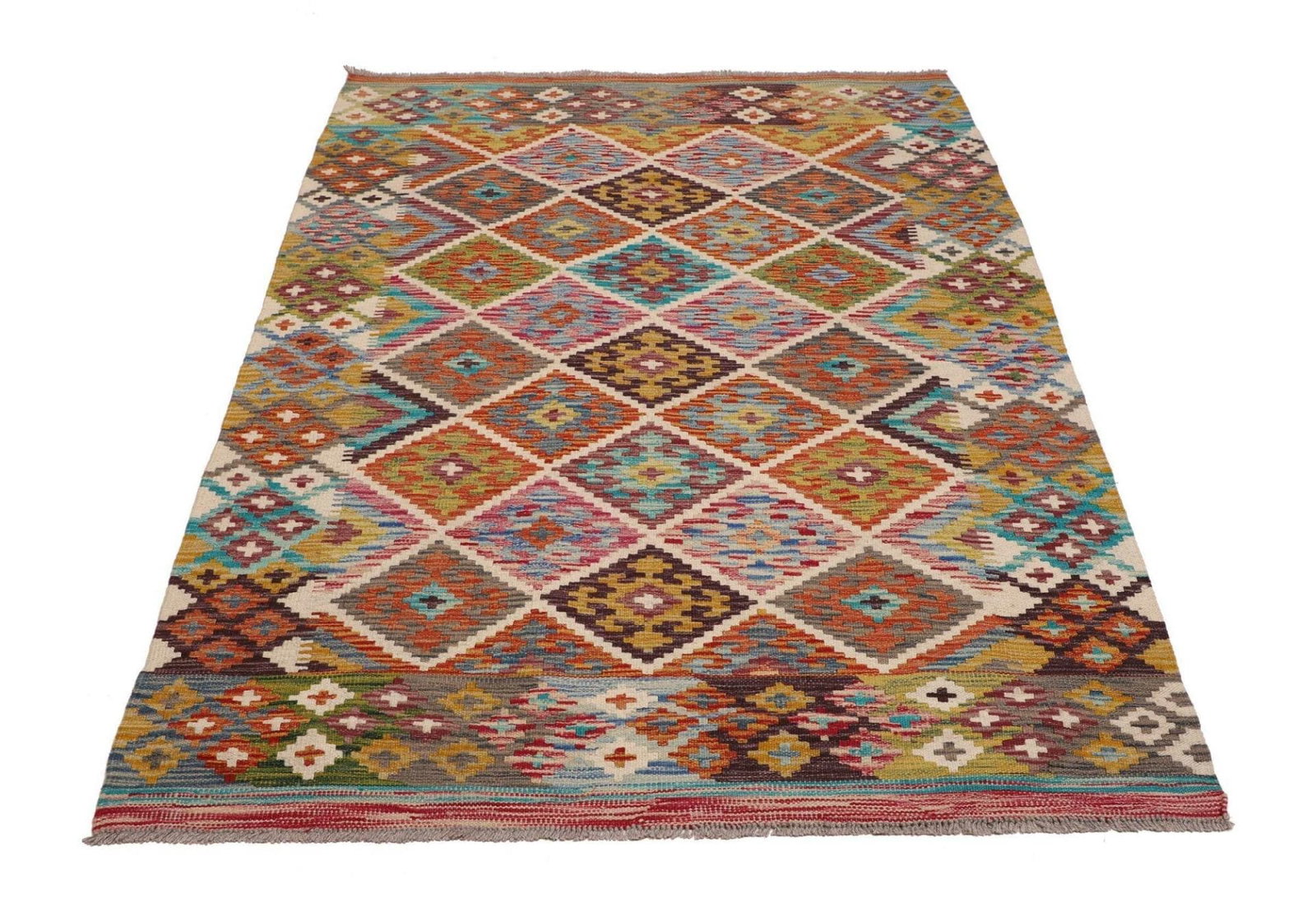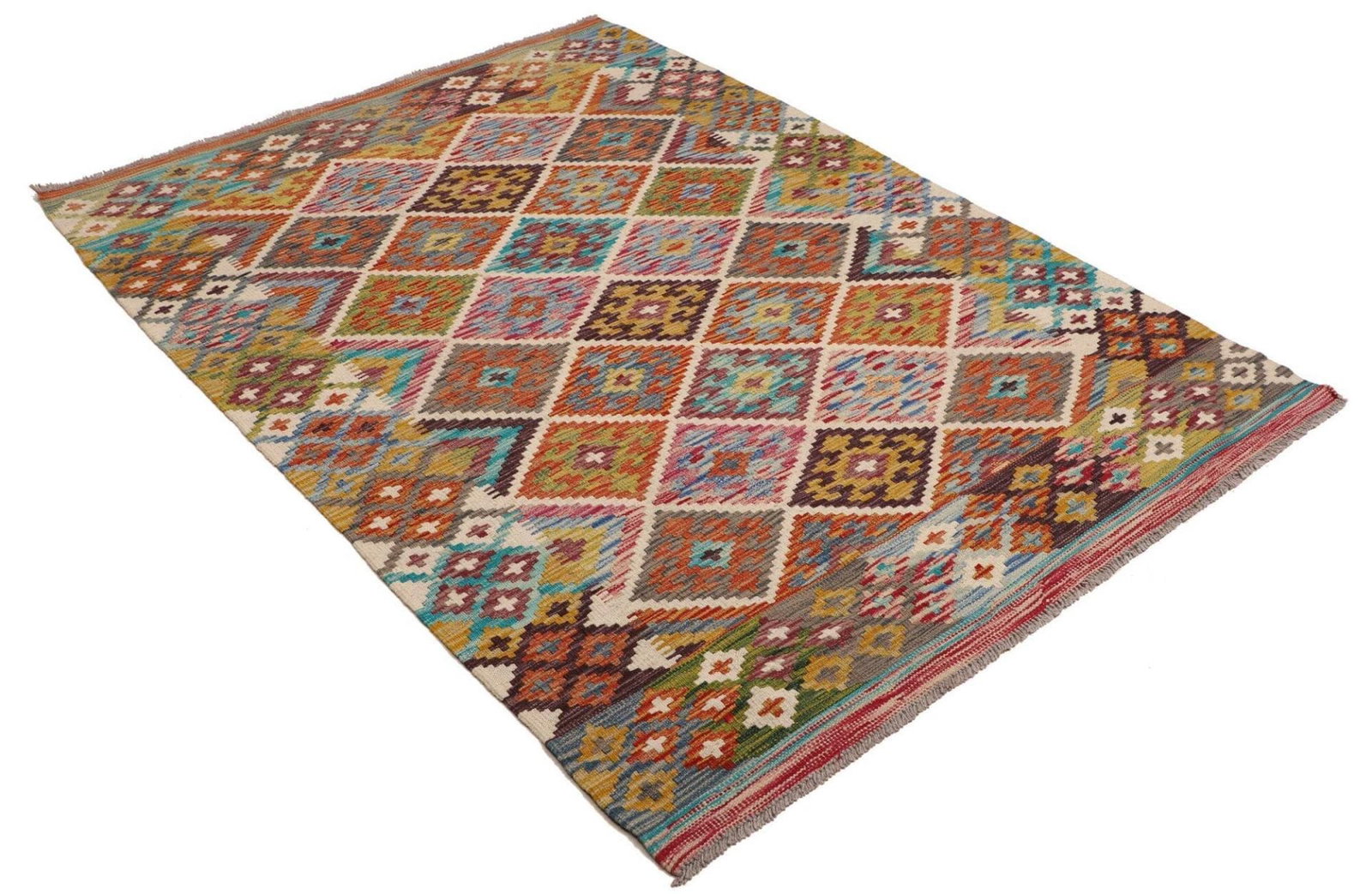 971$ In den WarenkorbKelim 215 x 144 cm – Handgewebt mit identischem Muster auf Vorder- und Rückseite – Orientteppich